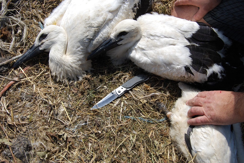 Čápi po příletu každý rok své hnízdo dostavují. K tomu používají materiál, který nejsnadněji seberou a dopraví do hnízda. Tím jsou i lehké a tvárné plastové odpadky, které ale představují velké nebezpečí. „Mláďata se do provázku snadno zamotají, může dojít k vážným zraněním vedoucím až k smrti mláďat,“ vysvětluje Dobruská. Přitom je snadné tomu předejít. Stačí místa, kde čápy pozorujete při sběru potravy nebo kam létají pro stavební materiál na hnízda, vyčistit od lidských odpadků, zvláště plastových provázků a vlasců.