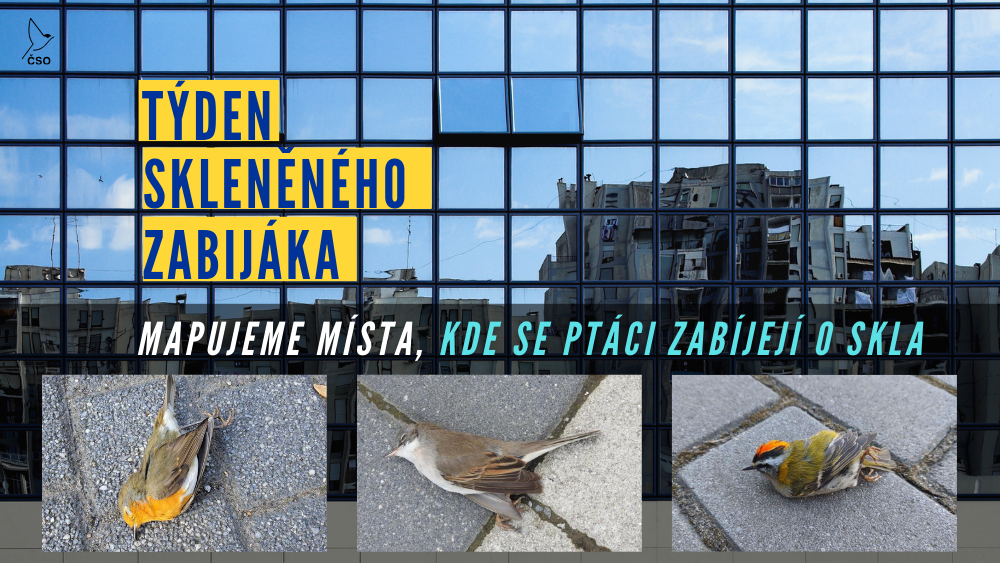 Česká společnost ornitologická (ČSO) každoročně na přelomu září a října organizuje Týden skleněného zabijáka. Tato akce upozorňuje na problém skleněných ploch, o které se zabíjejí a zraňují ptáci. Jedná se o jednu z nejčastějších příčin, proč u nás ptáci umírají. Odhadujeme, že po nárazu do prosklené plochy v Česku zahyne každý rok milion ptáků. Ale nemusí to tak být. Problém má řešení.