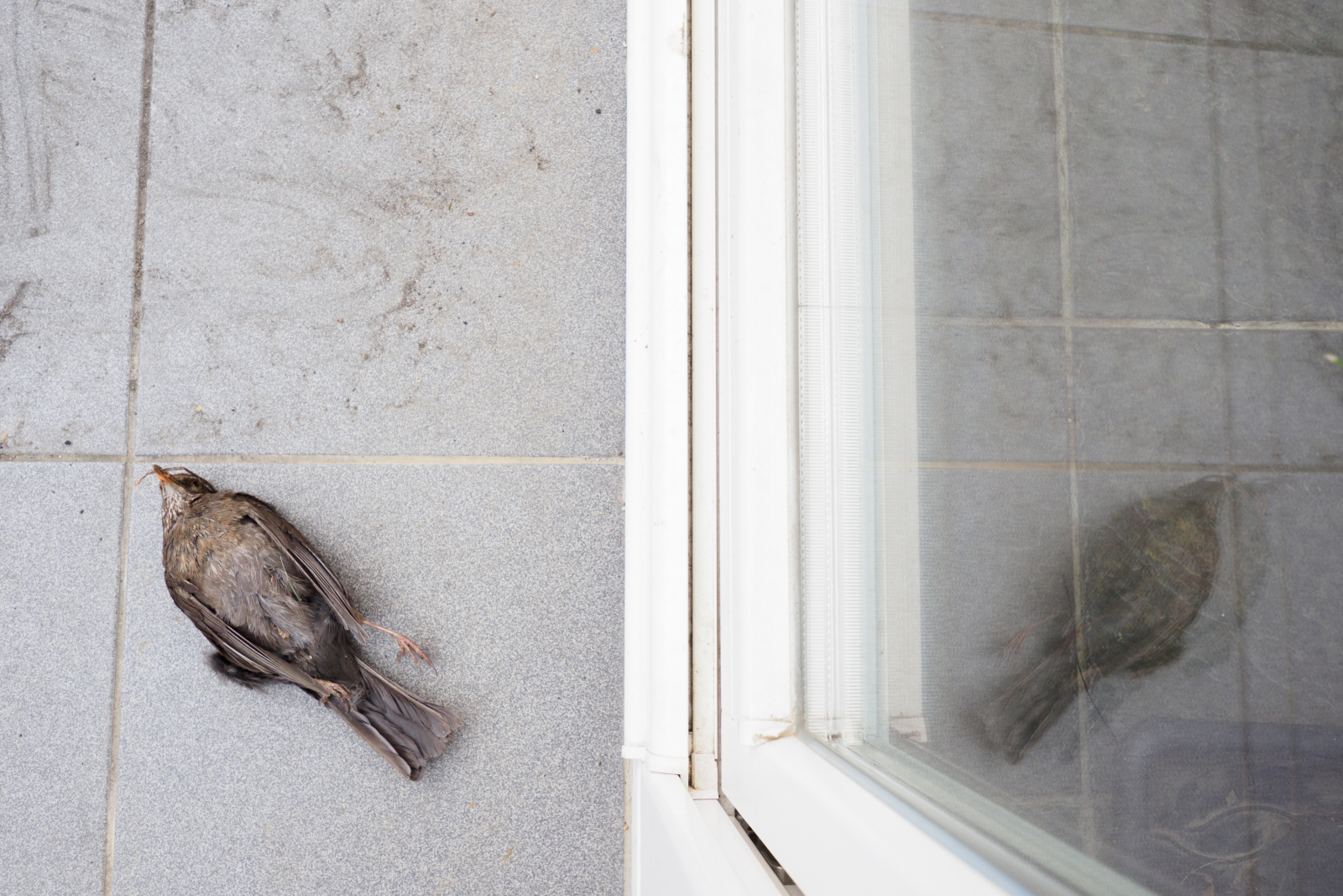 • nález vyfoťte se skleněnou plochou na pozadí, ne pouze detail uhynulého/poraněného ptáka