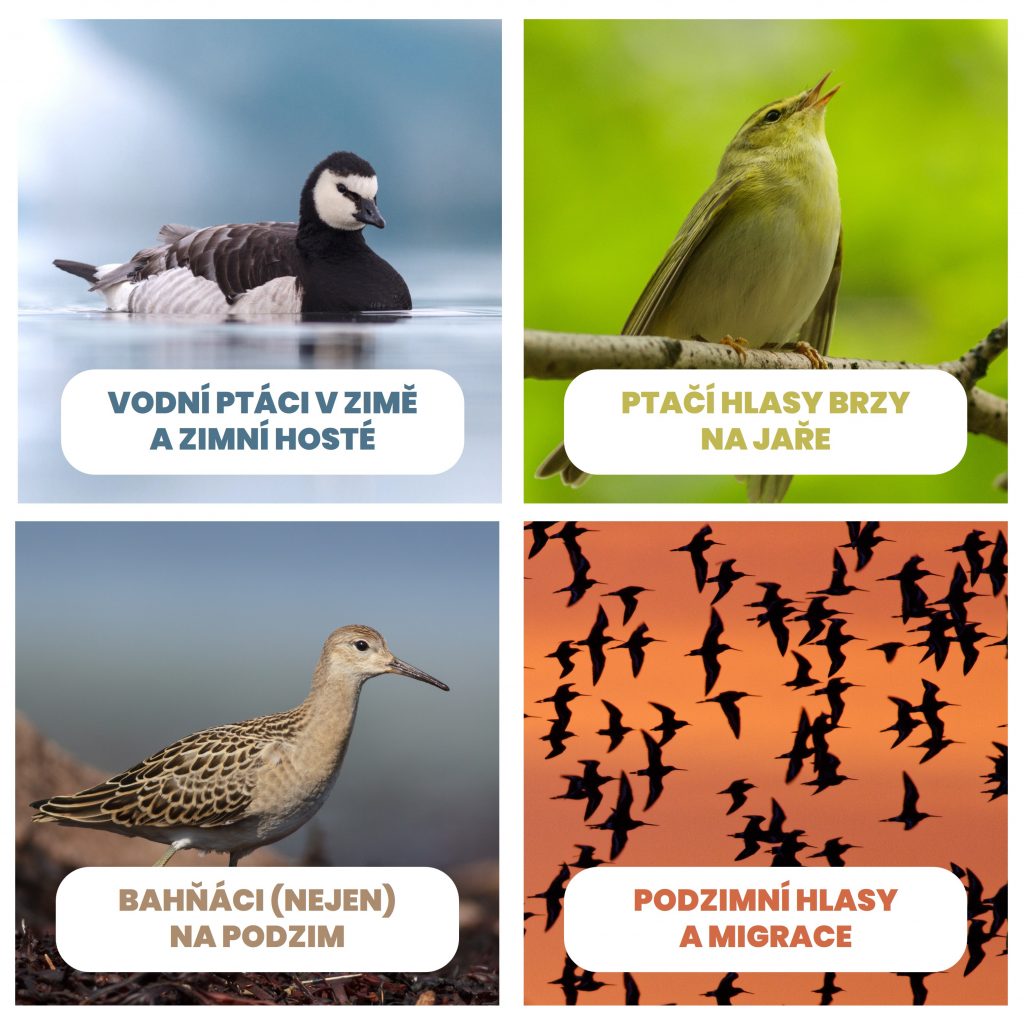 Září je u nás nejlepším měsícem pro pozorování bahňáků, a proto očekáváme hejna vodoušů, jespáků, kulíků a při troše štěstí třeba také kolihy, břehouše nebo jiné vzácnější hosty. Mimo to budou na lokalitách přítomné migrující kachny, potápky a racci, zaměříme se také na skupinky protahujících pěvců a šance je i na pozorování kalousů na deništi.