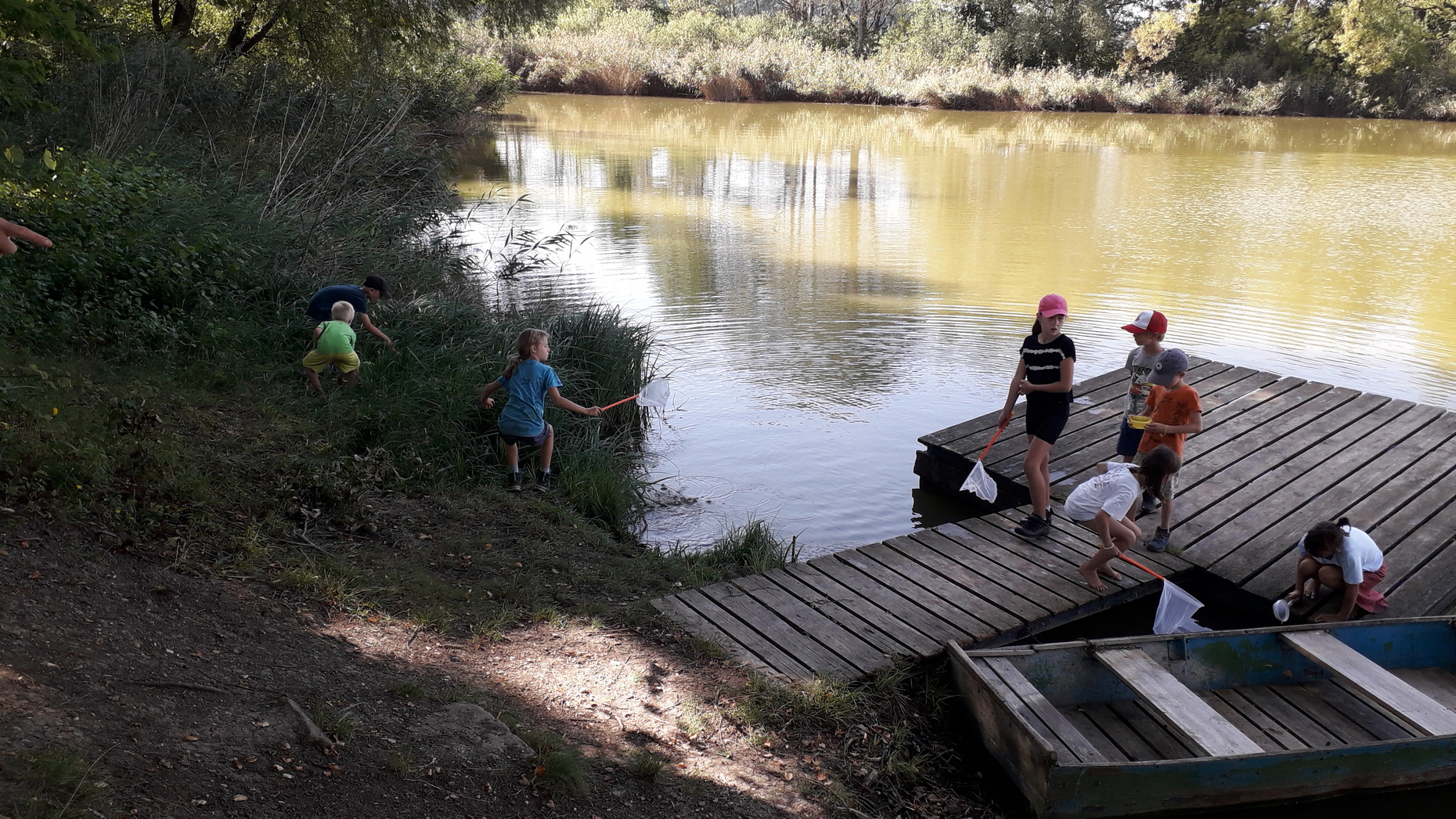 Děti se pustily do lovení vodních breberek.