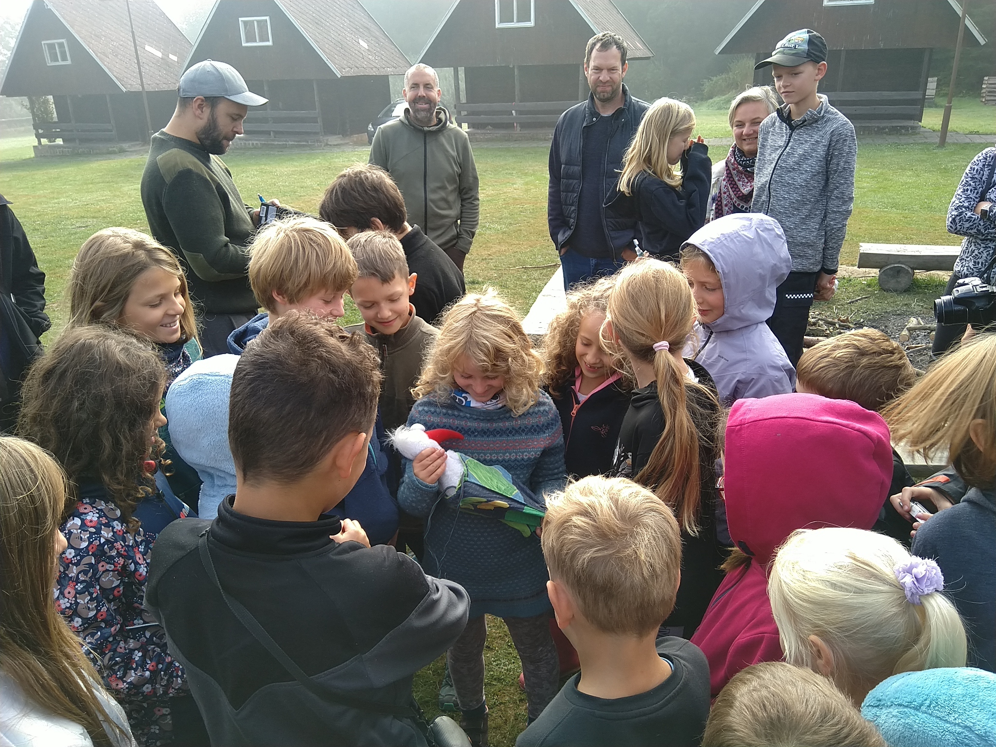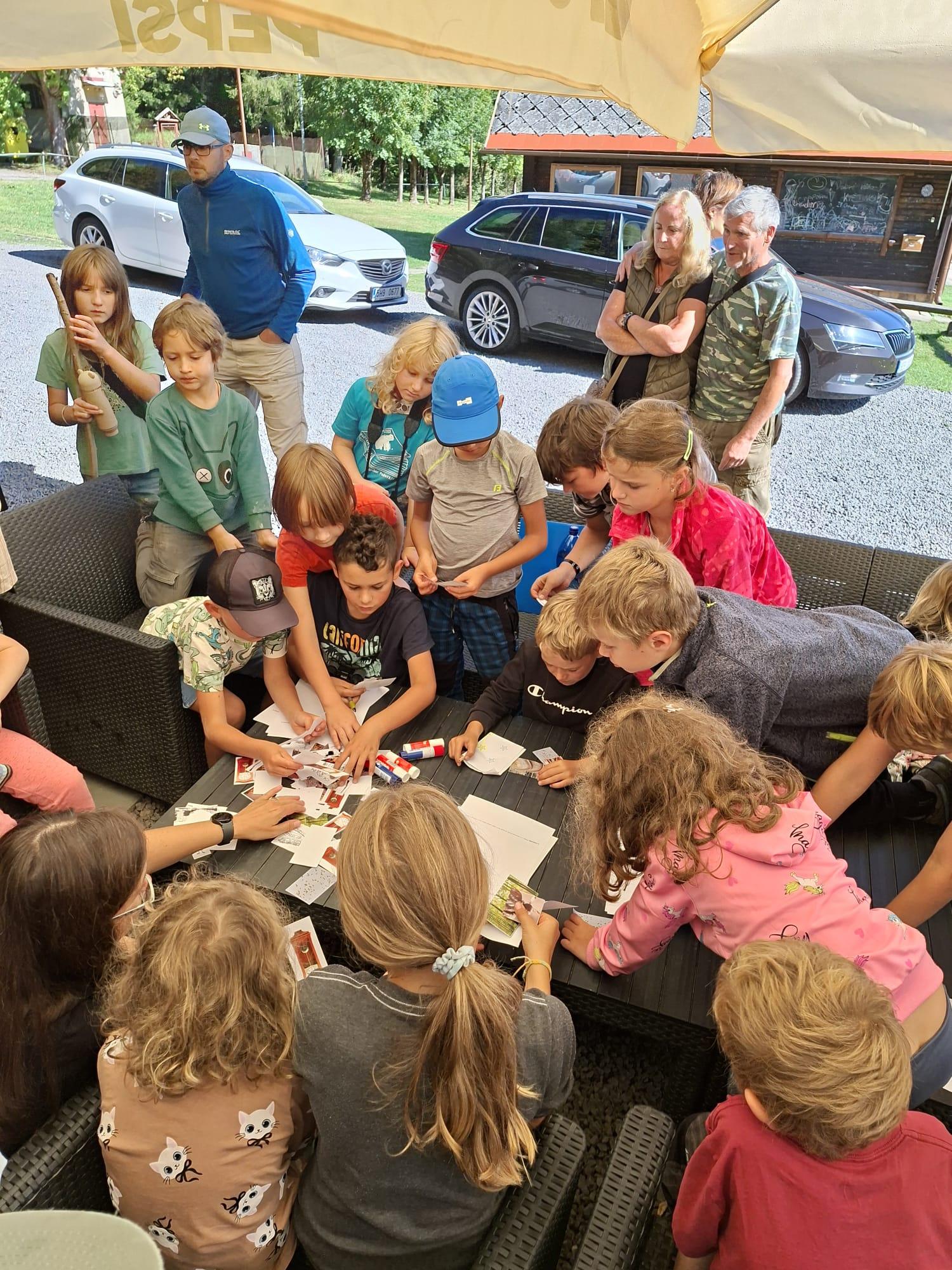 Tak jsme mezi ukázkami kroužkování začali dopolední hru. Děti získaly indicie tajemného příběhu.