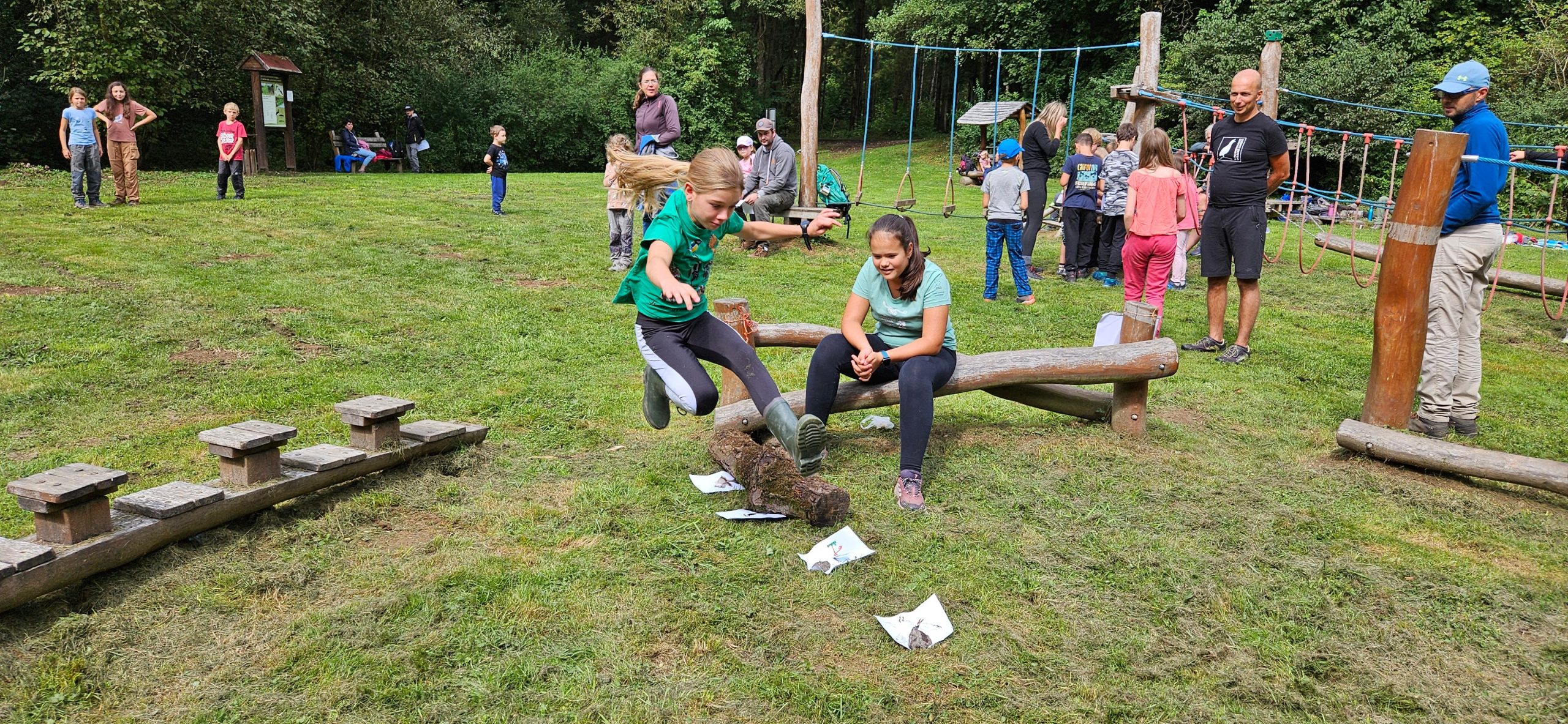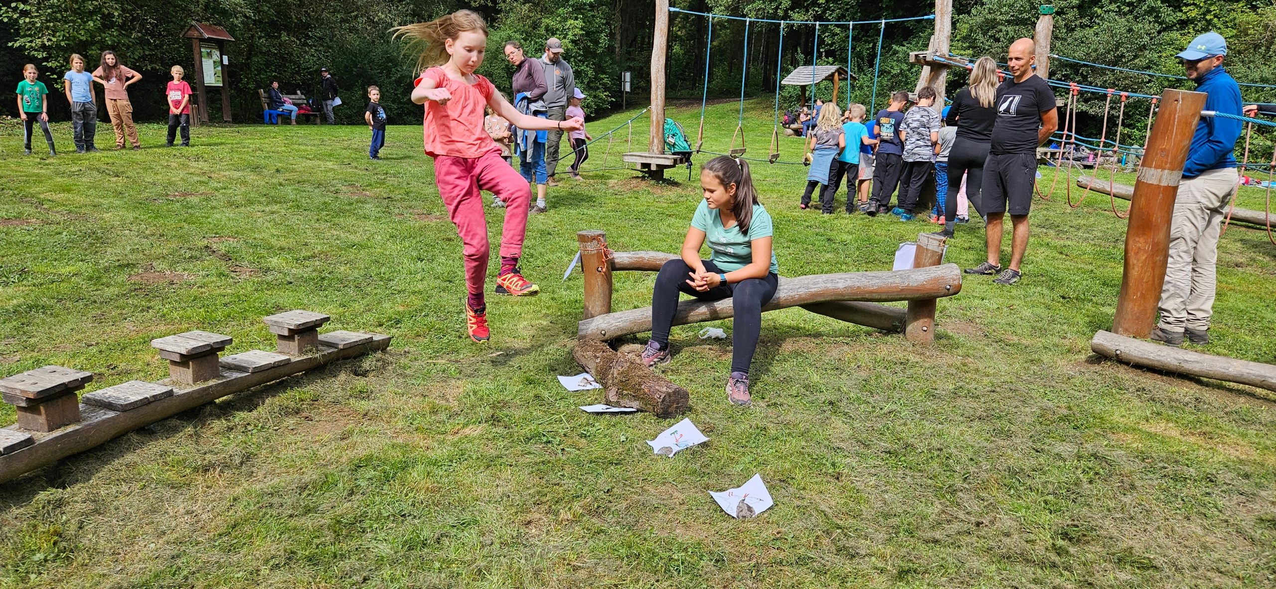 Polední zastávka na tahové cestě byla na hřišti, kde jsme si odpočinuli a doplnili energetické zásoby.