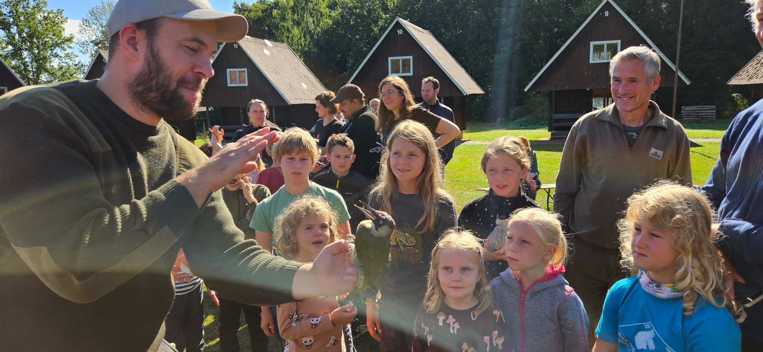 Ráno přijel kroužkovatel Kuba Vrána, aby zblízka představil ptačí obyvatele okolí.