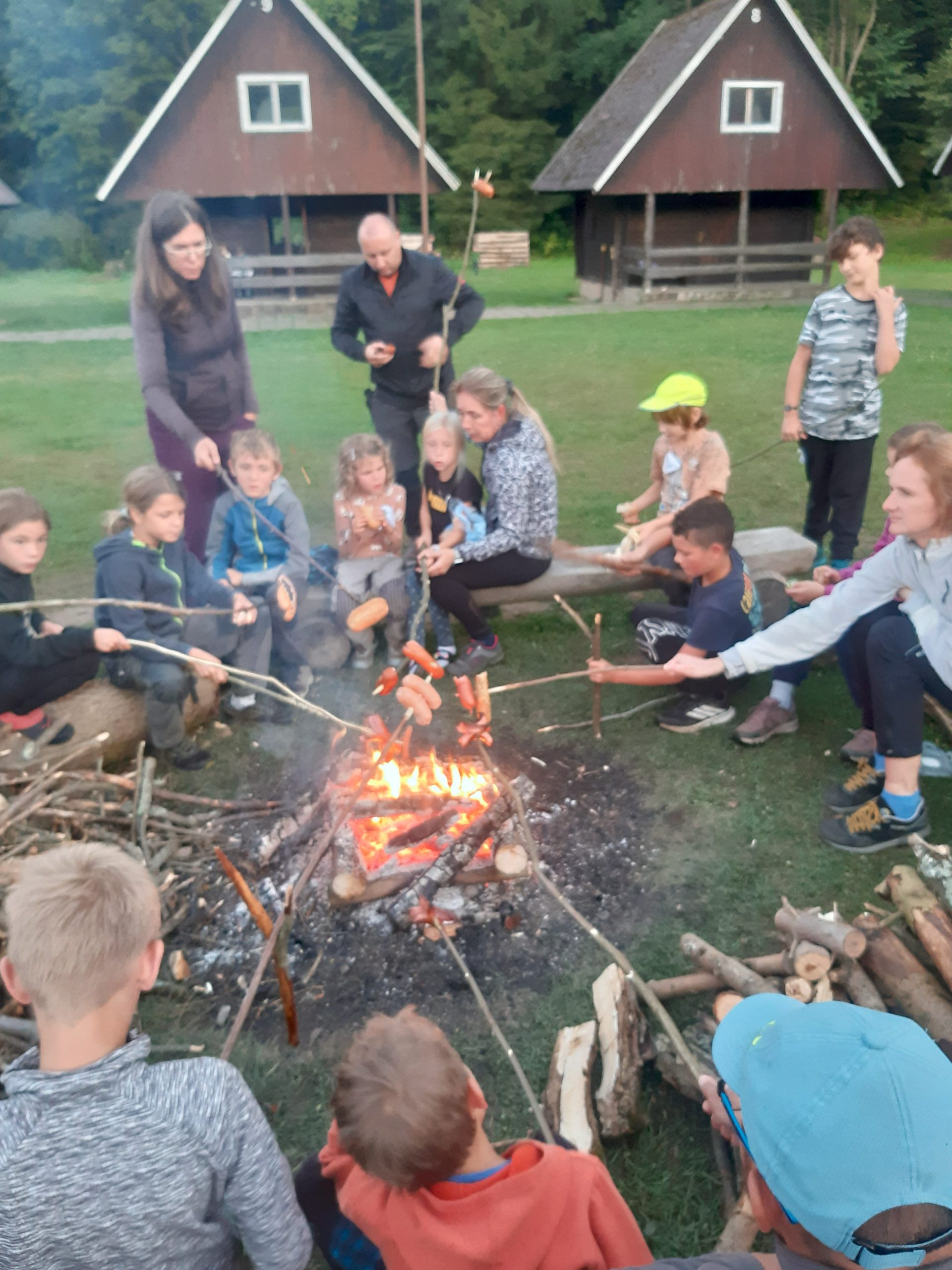 Večerní táborák přinesl chvilku pohody, odpočinek i něco do zobáčku.