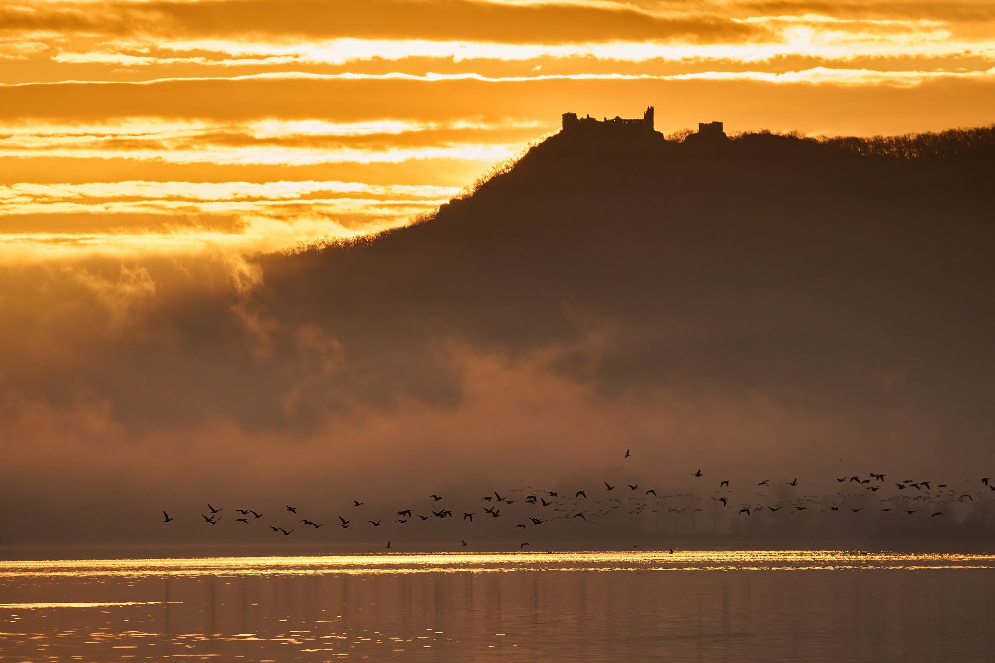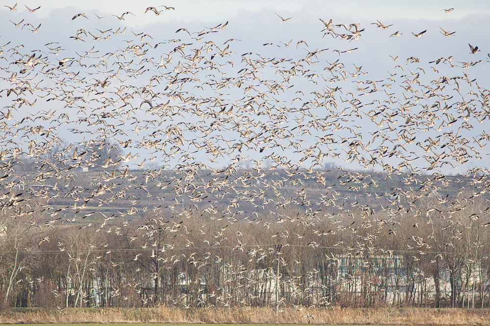 V Mistříně nebylo o ptáky nouze, jak dokazuje i pozorování takto početného hejna hus. Foto: Karel Šimeček