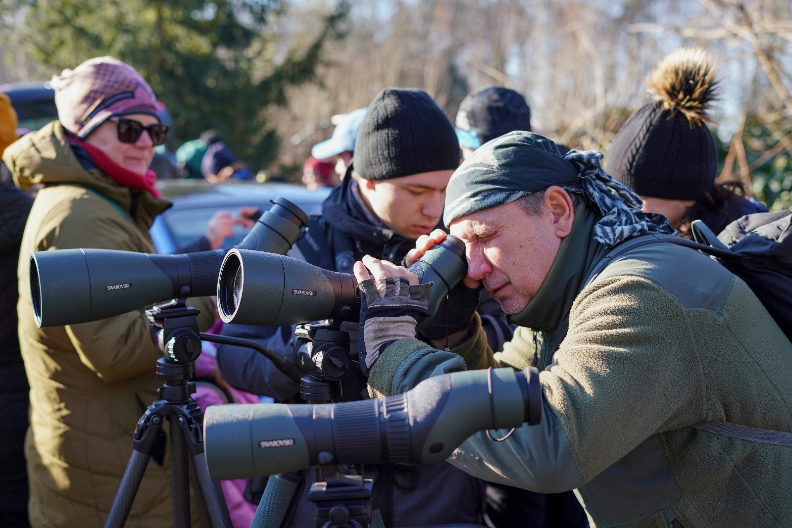 Na mnoha místech si mohli lidé vyzkoušet stativové dalekohledy, které jsou při pozorování ptáků na větší vzdálenosti nedocenitelným pomocníkem. Foto: Antonín Cettl