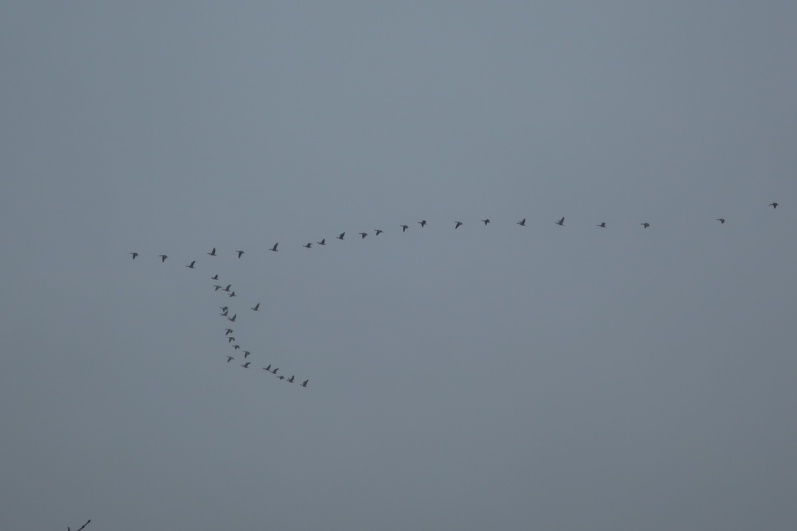 Nad Záhlinickými rybníky se pozorovatelům poštěstilo spatřit i toto působivé hejno hus velkých. Foto: H. Polášková