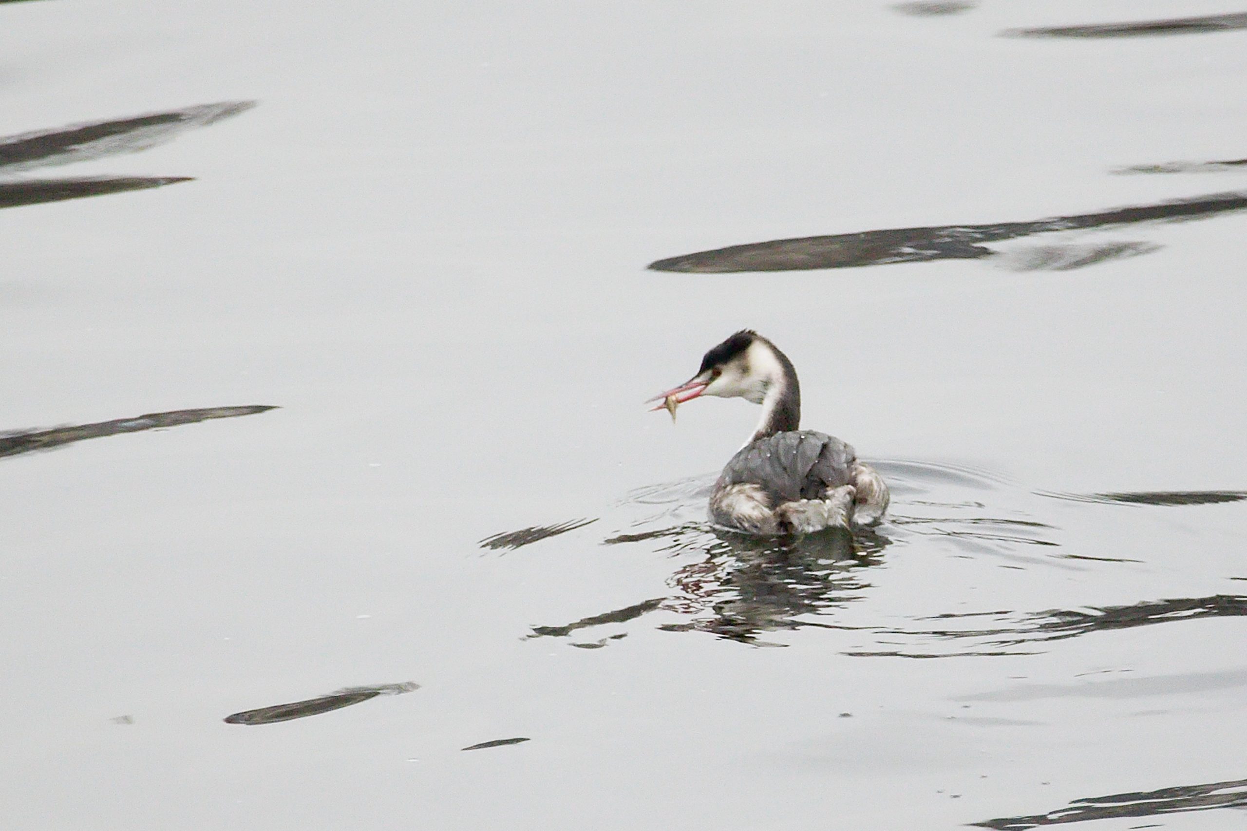 Zarybařit si na Vltavu přiletěla i tato elegantní potápka roháč. Foto: P. Martínek