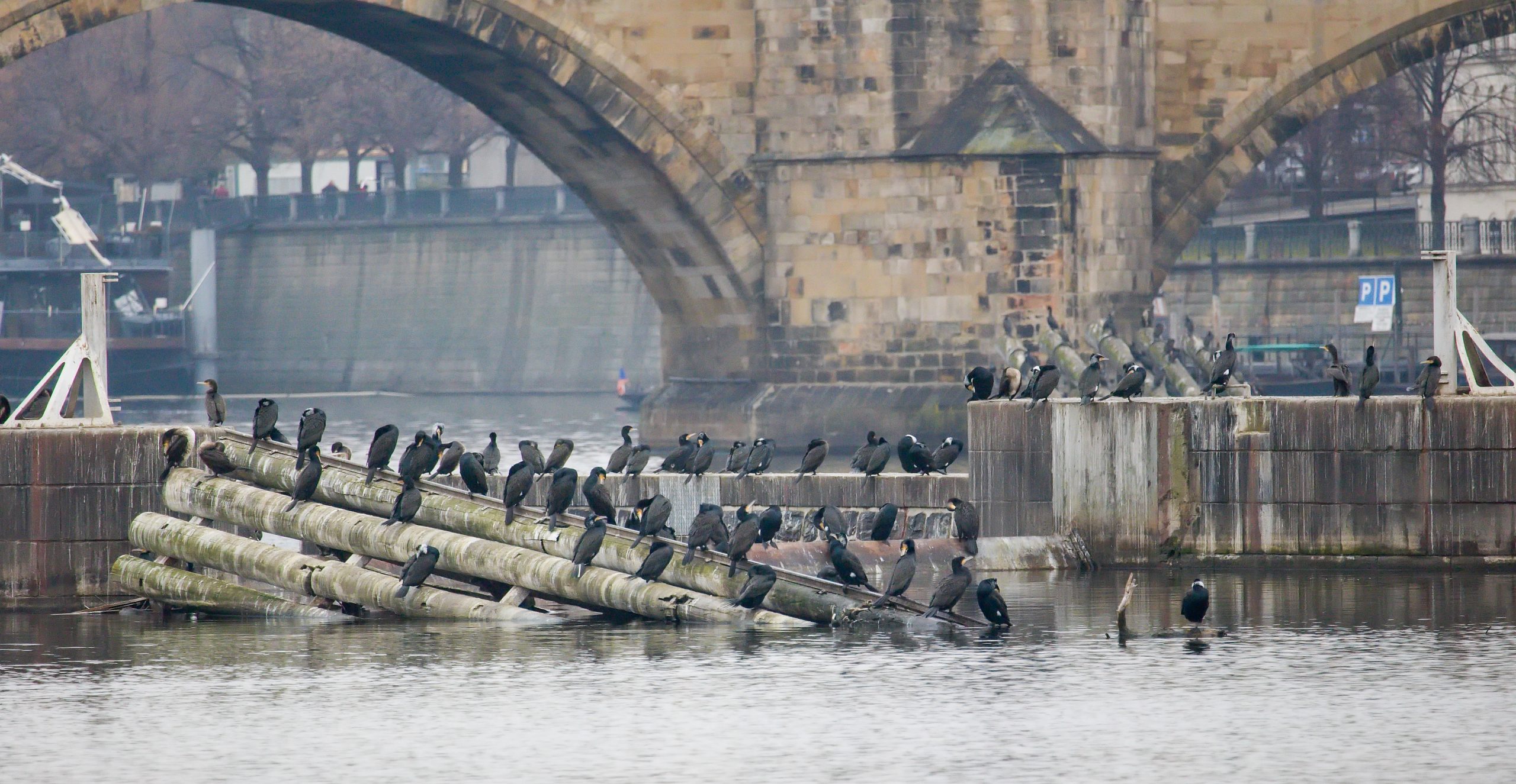 Objektivům fotografů zapózovali i kormoráni velcí. Nezamrzající úseky řek pro ně v zimě představují klíčový zdroj potravy. Foto: P. Martínek