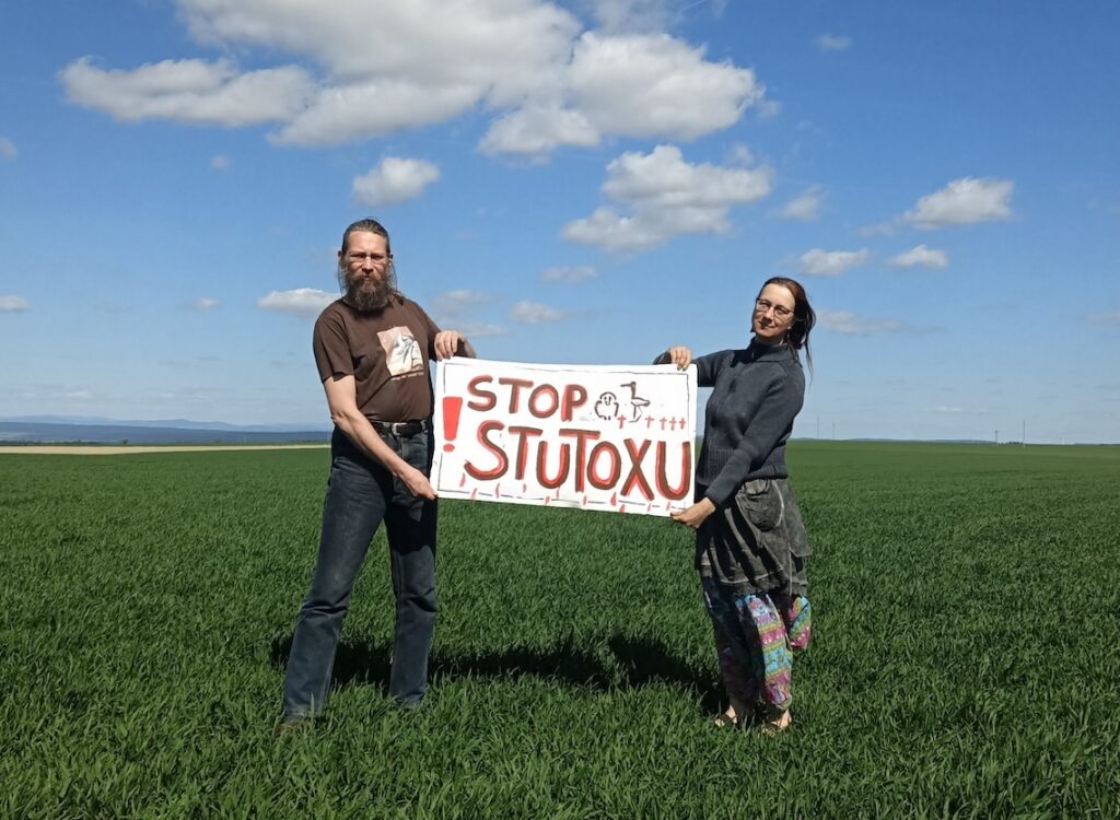 - např. vyfotit se s cedulí Stop Stutoxu, podobně jako Dan Pitek - sedlák pod Milešovkou, člen ASZ a člen ČSO, který ke Stutoxu napsal 16. dubna toto vyjádření.