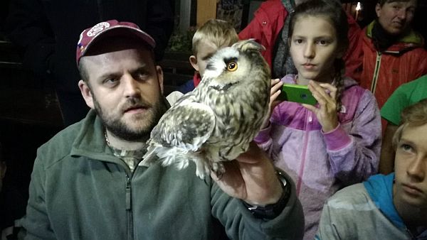 Po splnění každého úkolu dostalo dítě samolepku s vyobrazením příslušného ptáka. Tu pak vylepilo do okýnka v knížce, kterou obdrželo při úvodním setkání. Knížka obsahovala zajímavé povídání o každém ptačím druhu a účastníci si ji odnesli jako památku i zdroj poučení. Doprovodný program, který pro nás připravil kroužkovatel Jarda Fořt, jen podtrhl úspěšnost akce. Během dne nám nosil zajímavé úlovky, ale největší ohlas mělo noční chycení čtyř kalousů ušatých, dva v pátek a další dva v sobotu. Zvláště děti byly naprosto fascinovány pohledem oranžových očí těchto krásných sov. Moc mu za to děkujeme!