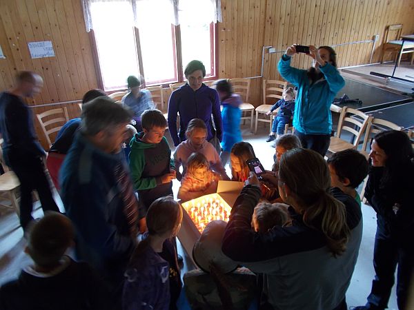 Dle zpětné vazby od účastníků se připravené úkoly líbily jak dětem, tak dospělým a kromě zábavy a příjemného společného prožití volného času, přinesly i poučení. První část úkolů jsme plnili během sobotního výletu po okolí. Připravený program byl doplněn pozorováním stativovým dalekohledem (měli jsme štěstí na luňáka červeného), chytáním a určováním drobných vodních živočichů a zjišťováním průhlednosti vody zdejších rybníků. Podrobně jsme též studovali všechny pavouky a příslušníky hmyzí říše a všechny rostliny. Několikakilometrový výlet ušly i ty nejmenší děti bez reptání a s velkým nasazením.