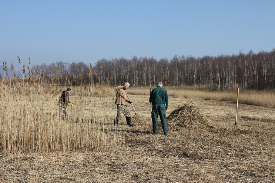 V ptačích parcích Rzy a Střimická výsypka dobrovolníci vysekávali a odklízeli litorální porost rákosin a ostřic. Nově otevřené plochy budou sloužit bekasinám otavním, čejkám chocholatým a dalším obyvatelům mokřadů ke sběru potravy a některým druhům také k rozmnožování.