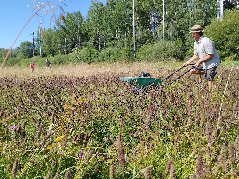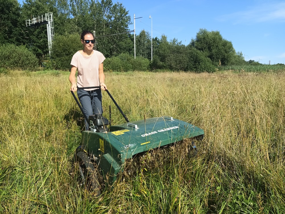 Se skvělým řešením přišli členové ZO ČSOP Šumava. Na krásném druhově bohatém kousku louky v ptačím parku ručně vedeným kartáčovacím strojem nasbírali semínka vybraných druhů rostlin.