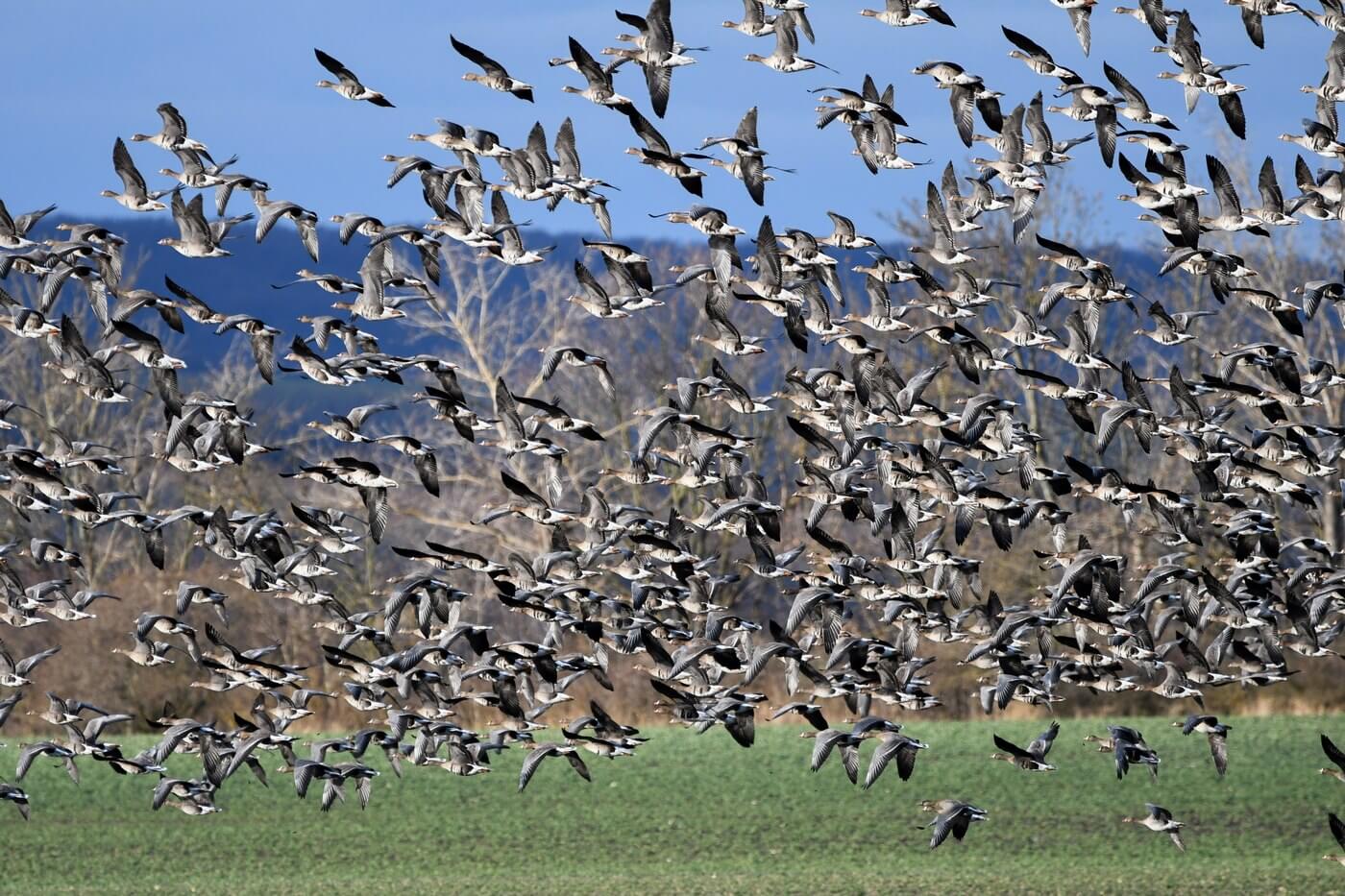 Cílovou skupinou na neděli se staly především kachny, za nimiž jsme jeli na Nesyt a Hlohovecké rybníky. Po cestě, kolem osmé hodiny, nás ale stihlo jedno překvapení. Po pravé straně silnice, kterou jsme projížděli v taktickém konvoji, se na ozimu páslo velké hejno hus. Vyskákali jsme z vozidel, popadli dalekohledy, foťáky, stativy a spěchali k blízké cyklostezce, odkud byly husy dobře vidět. V nadšení z hejna jsme si až po chvíli uvědomili ledový vítr. Jen ti, kteří se oblékli jako na severní pól, měli výhodu. I přes největší snahu všech jsme bohužel nezaznamenali žádný jiný druh hus, nicméně i samotné běločelky byly úžasný zážitek.