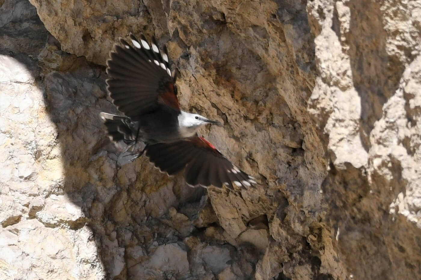 Když už všichni získali své jisté pozorování zedníčka, přišlo na řadu sčítání, jehož metodiku nám pěkně připravil Lukáš. Rozdělili jsme se na čtyři skupiny přibližně po pěti lidech. Každá měla za úkol se dostat na jednu ze čtyř lokalit, kde byl zedníček někdy pozorován, tam zůstat asi tak dvě hodiny a pečlivě monitorovat, zdali se v lomu nějaký ten zedníček nepohybuje. V případě jeho výskytu napsat na messengerovou skupinu a připojit čas pozorování. Tři skupiny ze čtyř pozorovaly zedníčka ve stejný čas, každá na své lokalitě, a tak byl podle našich informací poprvé za letošní zimu potvrzen výskyt 3 zedníčků skalních na Pálavě, a to sice v Pastorkově lomu, lomu Martínka a Soutěska.