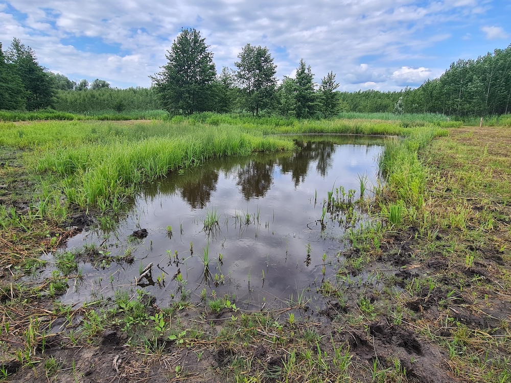 Tůně k rozmnožování využívají také zelení skokani (Pelophylax sp.), skokani štíhlí (Rana dalmatina), rosničky zelené (Hyla arborea), blatnice skvrnité (Pelobates fuscus) a čolci obecní (Lissotriton vulgaris), jak ukazuje přítomnost jejich pulců a larev. Ve většině tůní byly zaznamenány i larvy vážek ze skupin Anisoptera i Zygoptera a larvy jepic rodu Caenis. Ze zajímavých druhů lze pak zmínit znakoplavky žluté (Notonecta lutea). Pozoruhodný je nález jednoho mladého jedince pijavky lékařské přímo na pastvině krav. Tento ohrožený druh byl v předchozích výzkumech nalezen i v okolních stabilních mokřadech a tento nález jen ukazuje, že je schopný využívat i drobnější vodní tělesa v širším okolí. „Nově vzniklé prohlubně zaplněné vodou bohužel velmi rychle obsadily i invazní druhy ryb, jako je střevlička východní a karas stříbřitý, které jsou problémem pro naše původní mokřadní společenstva. Proto je důležité, aby tůně vysychaly nebo v případě potřeby proběhl odlov těchto ryb,“ dodává hydrobiolog Jan Sychra, který na lokalitě prováděl průzkum tůní.