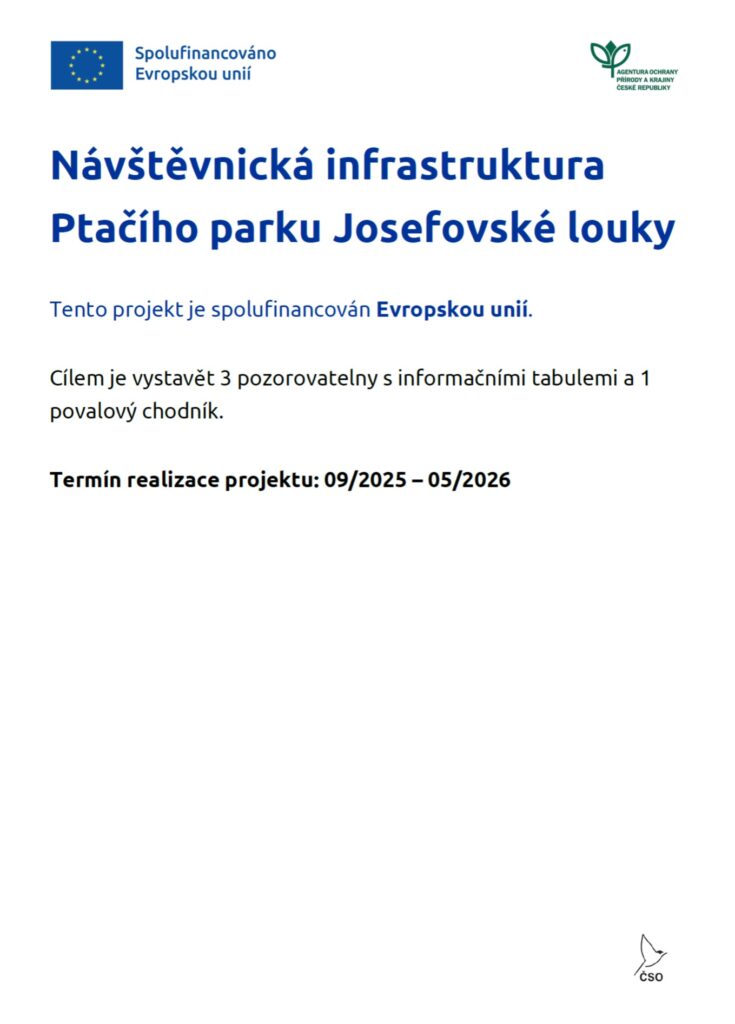 V nejstarším ptačím parku vznikají dřevěné pozorovatelny, které usnadní pozorování ptáků a dalších obyvatel mokřadů. Všechny jsou situovány v blízkosti řeky Stará Metuje, která je evropsky významnou lokalitou a přírodní památkou se zaměřením na ochranu vážky klínatky rohaté. Z pozorovatelen tedy bude rozhled na řeku i louky a největší tůně parku. Návštěvníci tak budou mít možnost přírodu sledovat bez jejího rušení. Zároveň tu najdou útočiště v případě nepřízně počasí. Věžová pozorovatelna a povalový chodník se začnou sestavovat během příštích týdnů.