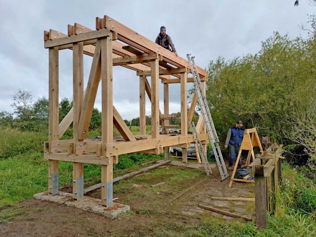 Stavbu provádí firma Tesařství Nový Dvůr.