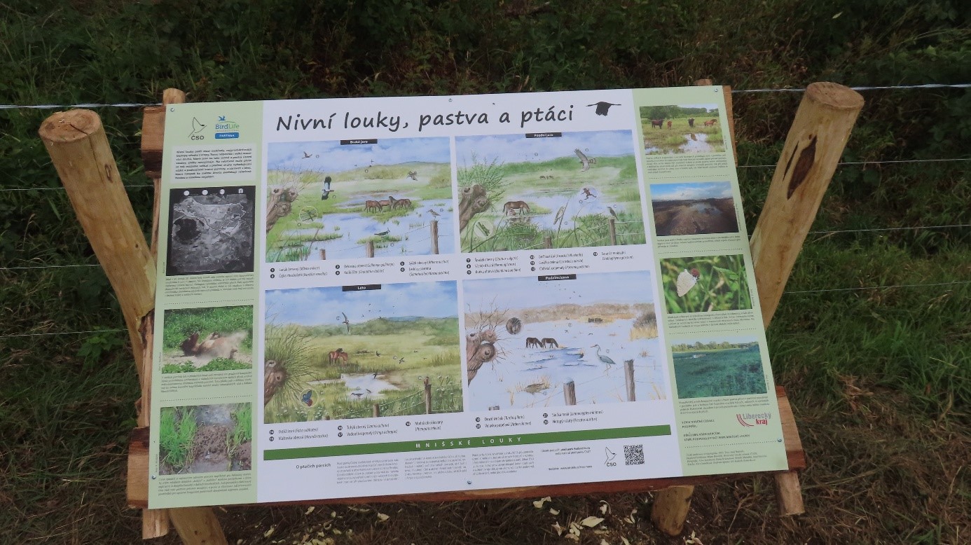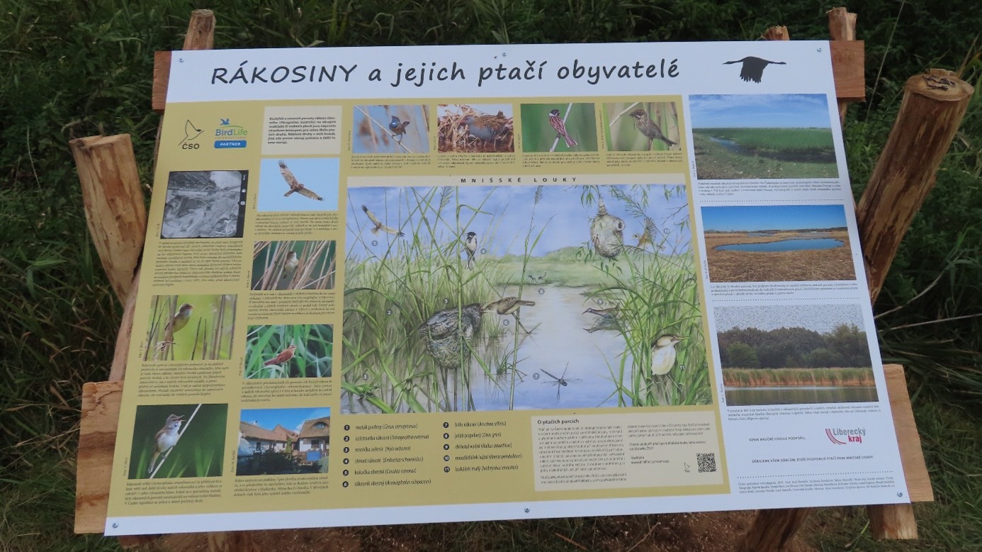 V ptačím parku Mnišské louky u České Lípy nově najdete dvě naučné cedule. Dočtete se na nich o významu pasených nivních luk, rákosin a o jejich ptačích obyvatelích.