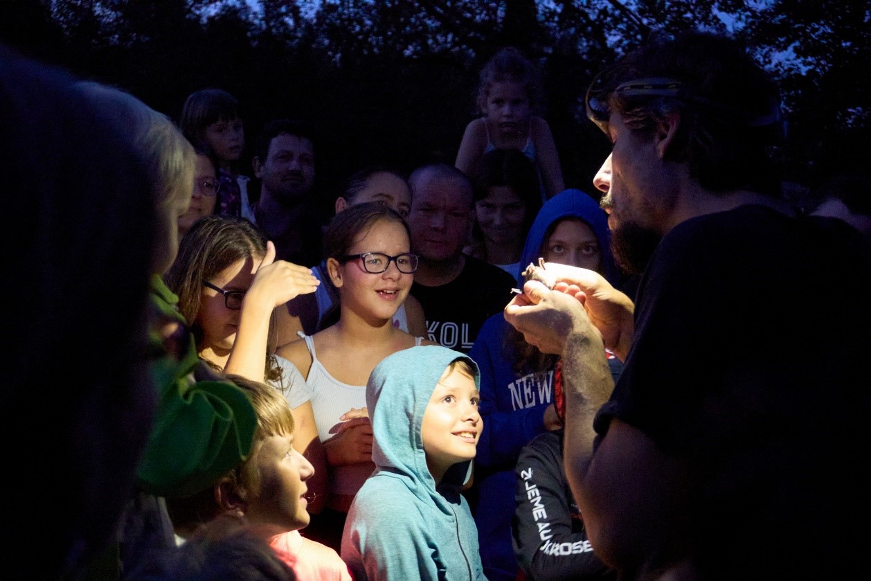 Marina Kipson a Martin Šálek z ČSO umožnili účastníkům seznámit se s dvěma druhy netopýrů – s netopýrem nejmenším a netopýrem vousatým – a uvedli je do tajů jejich života. Účastníci se tak mohli dozvědět např. jakým způsobem se netopýři orientují při nočních letech nebo kolika let se dožívají.