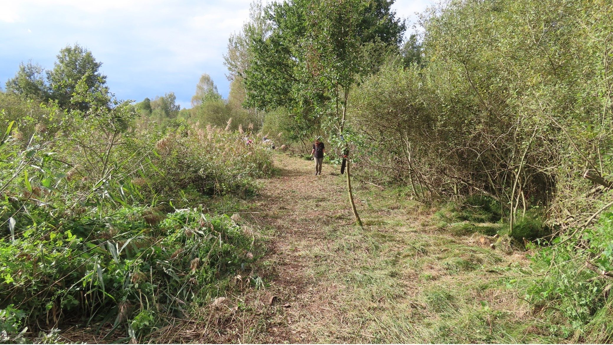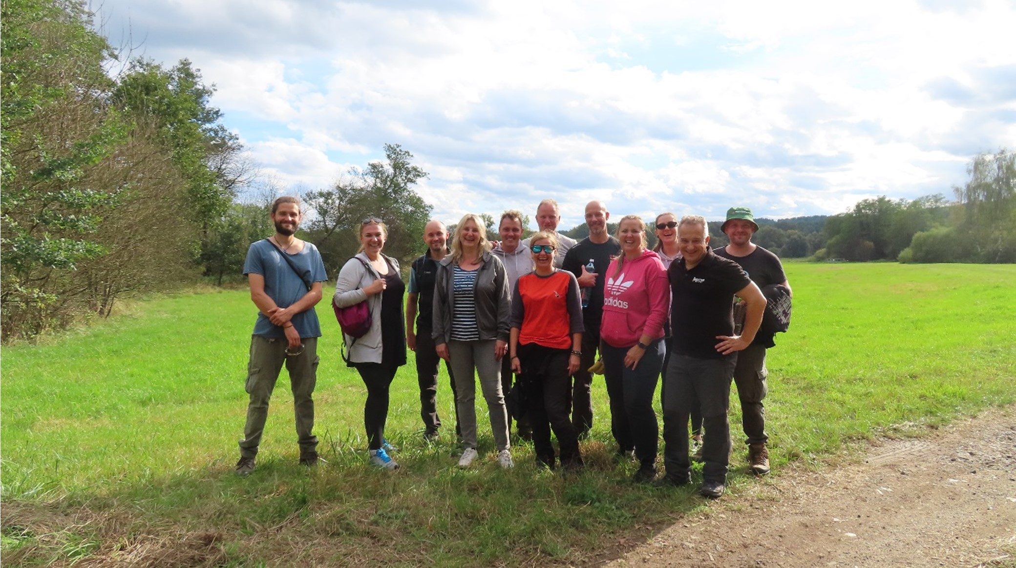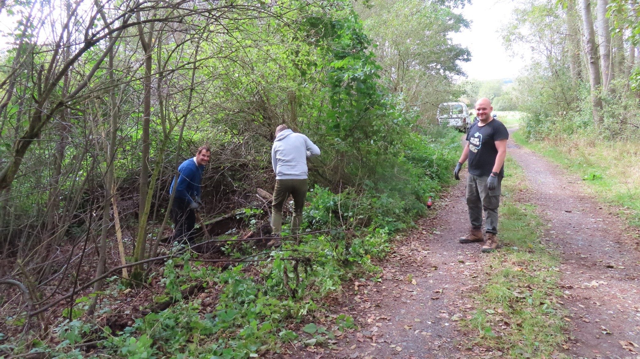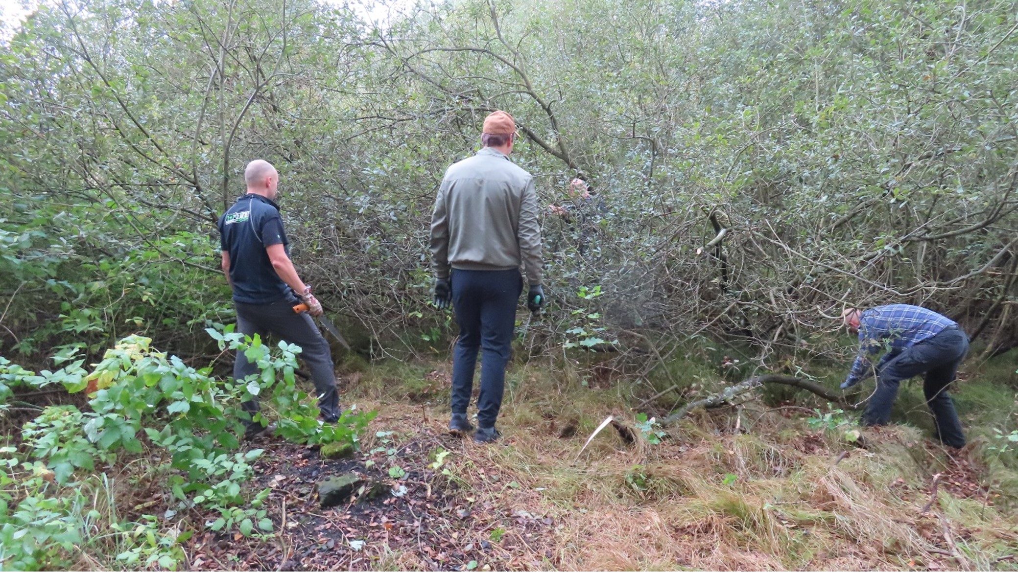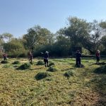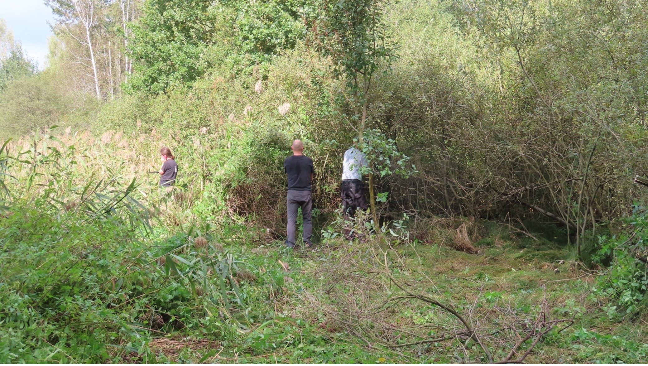 Na Mnišských loukách pak v rámci jedné brigády zástupci Porsche Česká republika začali s výřezem části naučného okruhu, který v současné době v parku vzniká a do budoucna ho osadíme naučnými panely a dalšími prvky infrastruktury pro návštěvníky parku. Jeho trasa povede zčásti po hrázích bývalého odkaliště, které jsou však již z nemalé části zarostlé. Prosvětlení tak bylo na místě a budoucí trasa se již rýsuje. Výřez větví ručními pilkami nebyla jednoduchá práce, nicméně po započetí je ihned patrný viditelný výsledek, a proto ani po náročné práci účastníkům nechyběl úsměv na tváři. Kromě výřezů na pracovníky čekalo též představení parku, krátká exkurze do pastviny exmoorských pony a ukázka kroužkování pěvců.