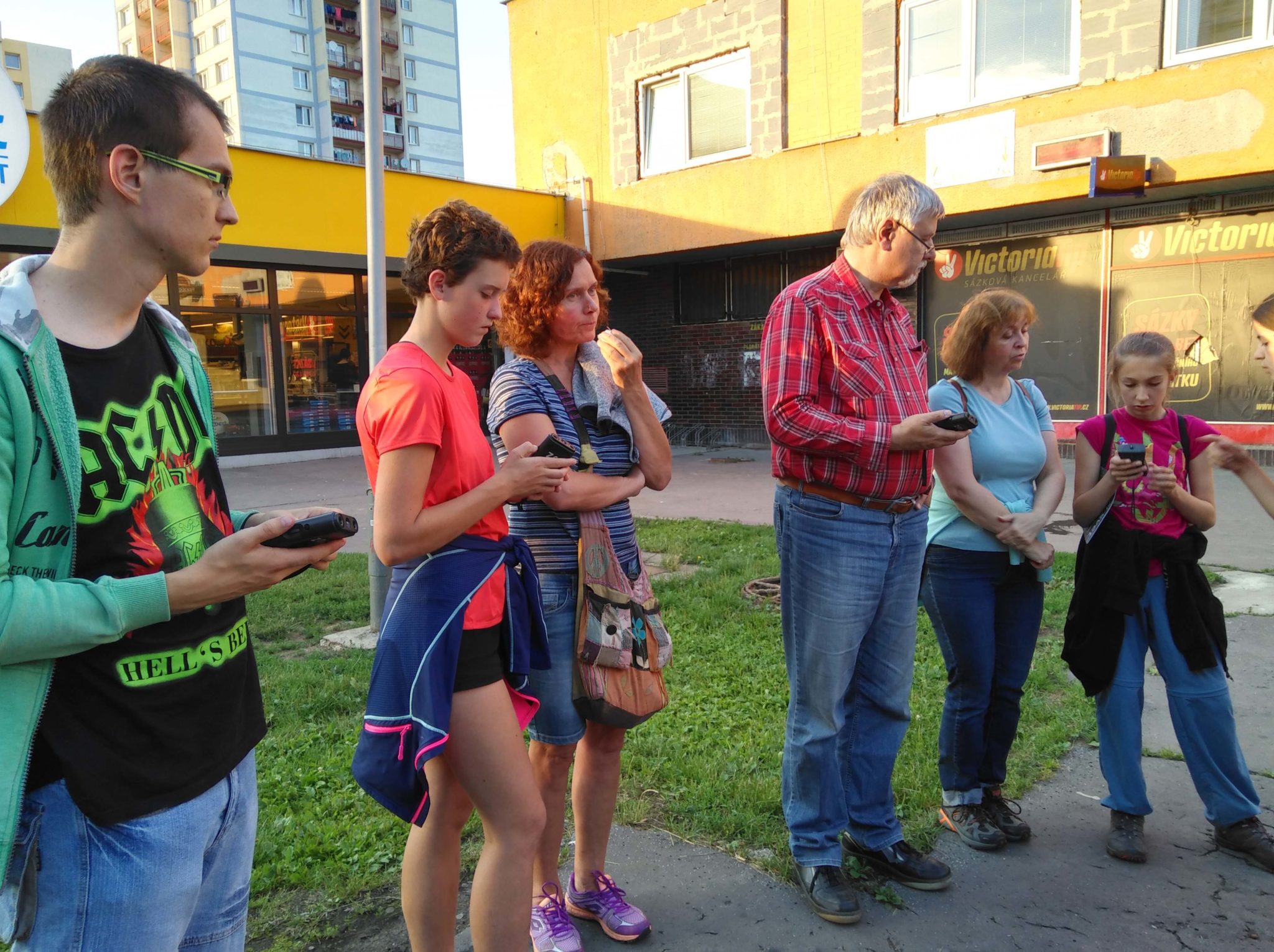 Na některých vycházkách si účastníci mohli vyzkoušet práci s detektory sami. (Zlín)