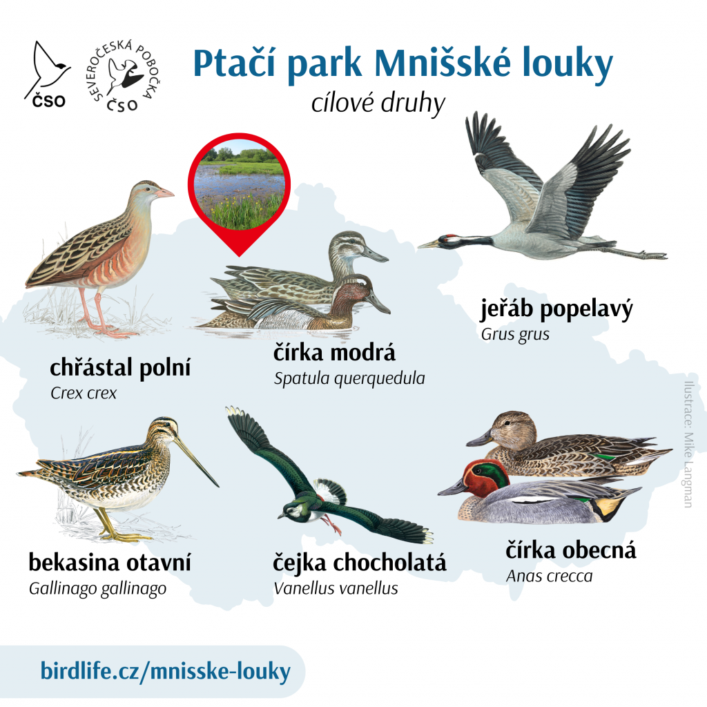 Mnišské louky u České Lípy, jeden ze sedmi ptačích parků České společnosti ornitologické (ČSO), se rozšířil o 5 hektarů. Podařilo se dojednat nákup důležitých pozemků, které pomáhají k budoucímu scelení celé plochy parku. Pozemky s výměrou 4,98 hektarů ČSO odkoupila od Farmy Ploučnice a Zelené Farmy (oba subjekty patří do tzv. Spojených Farem ve vlastnictví skupiny CPI) za 1 609 933 korun. Území v údolí Ploučnice, které ČSO vykupuje z darů, slouží jako útočiště pro ptáky i další živočišné a rostlinné druhy.