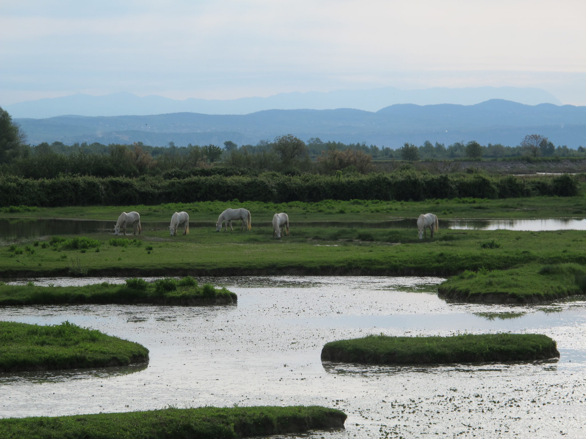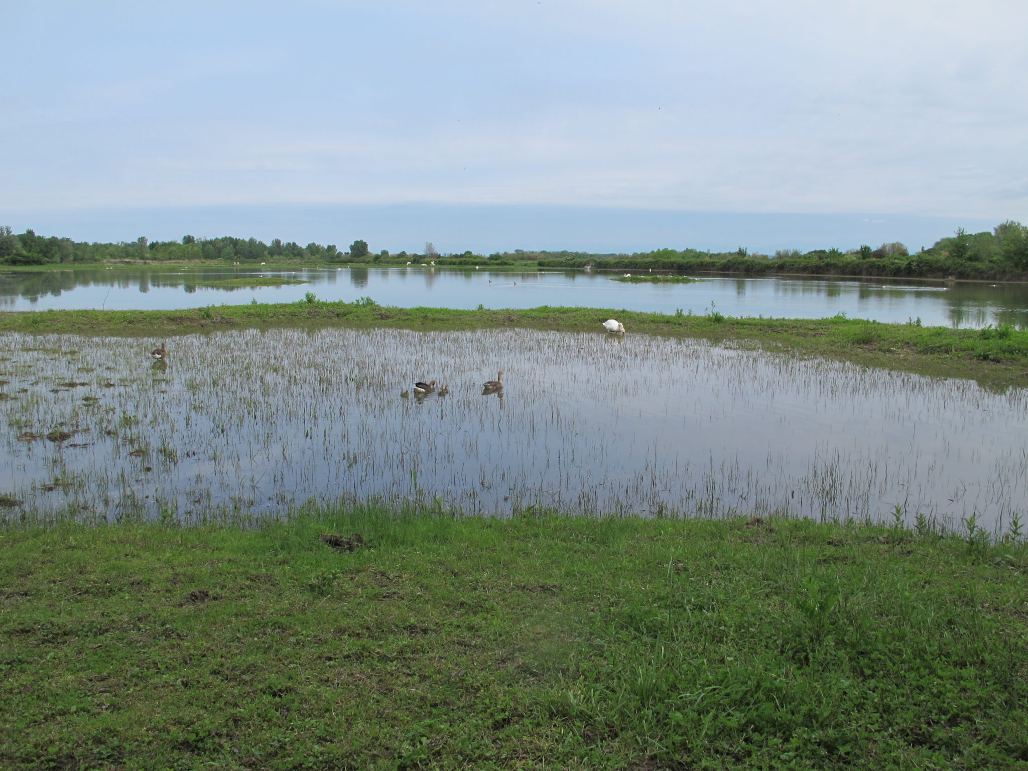 Po prohlídce jsme pokračovali jihozápadním směrem k deltě řeky Soči (Isonzo). Cestou jsme se zastavili při ústí jednoho z kanálů řeky Soči mokřadní oblasti rezervace Valle de Cavanata. Zde jsme z nedaleké pozorovatelny a promenády pozorovali ibisy posvátné, volavky stříbřité, rybáky černé a další. Poté jsme se přesunuli do další rezervace Foce dell’Isonzo Isola della Cona, kde nás již netrpělivě očekávala místní průvodkyně. Přijeli jsme však se zpožděním, takže jsme stihli jen vyhlídku na mokřady z velké vstupní pozorovatelny, ze které bylo možné spatřit například husice liščí, pisily čáponohé a podobné vodní ptactvo. P