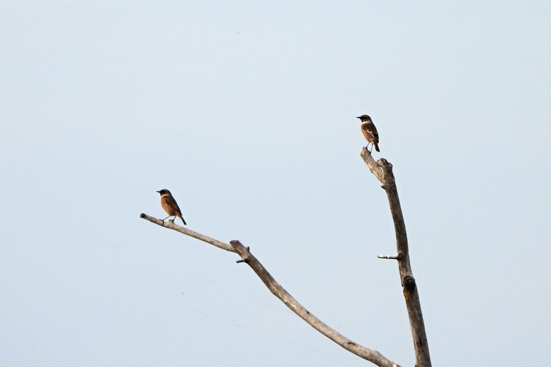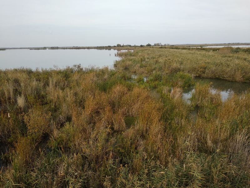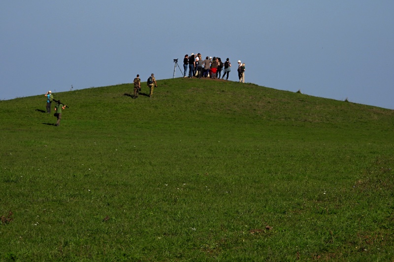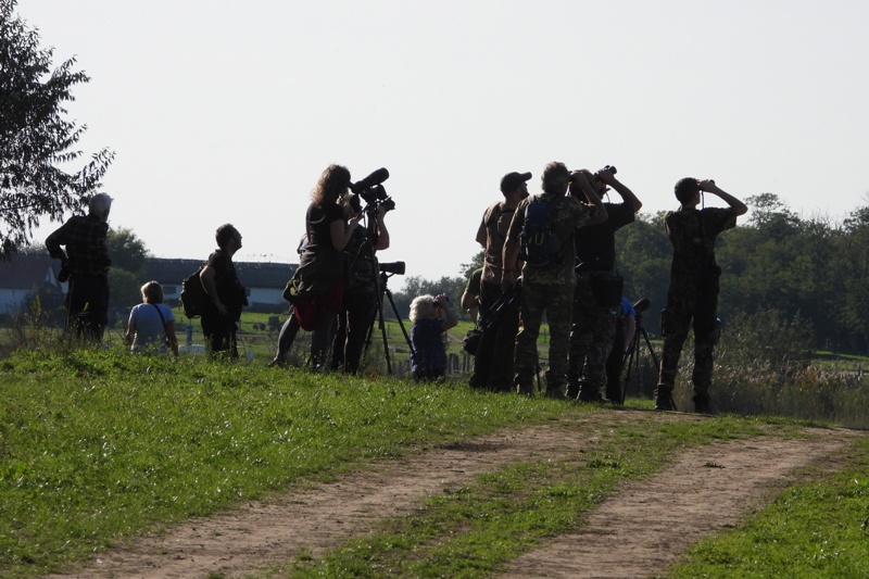 Následoval přesun do části parku s větším množstvím vodních ploch, kde jsme se prošli k rybníku Derzsi. Zde nás čekaly tradiční vodní druhy jako kachny, labutě, husy, kopřivky nebo poláci. Doplněné pochopitelně i o volavky, racky (chechtavé a bělohlavé), kormorány (včetně kormoránů malých) a rákosové druhy jako moudivláčci, sýkořice vousaté nebo moták pochop. Oblohu i nadále křižovala obrovská hejna špačků a havranů. Naší další zastávkou byla již klasická otevřená puszta, tedy rozlehlé planiny s minimem vegetace, sem tam s nějakou budovou nebo tradičními studnami, kterými si v dobách minulých dávali mezi sebou lidé signály. Zde jsme se po krátké diskusi rozhodli „dobýt alespoň jeden vrchol“ – šlo o kurgan, uměle vytvořenou pohřební mohylu dávných obyvatel z dob před 2 tisíci lety, která vystupuje jen pár metrů nad krajinou, ale poskytuje dobrý výhled. Toho jsme hned využili k zaznamenání několika nových druhů, zejména bělořita šedého a také orla královského. Zase nechyběly přelety jeřábů, zakroužilo nad námi o tisícihlavé hejno havranů s kavkami a zaznamenali jsme i bramborníčky černohlavé nebo strakapouda jižního. Cesta otevřenou pusztou končila u další rozhledny v místech hnízdění vlh a mandelíků, kde jsme narazili na dalšího orla královského.