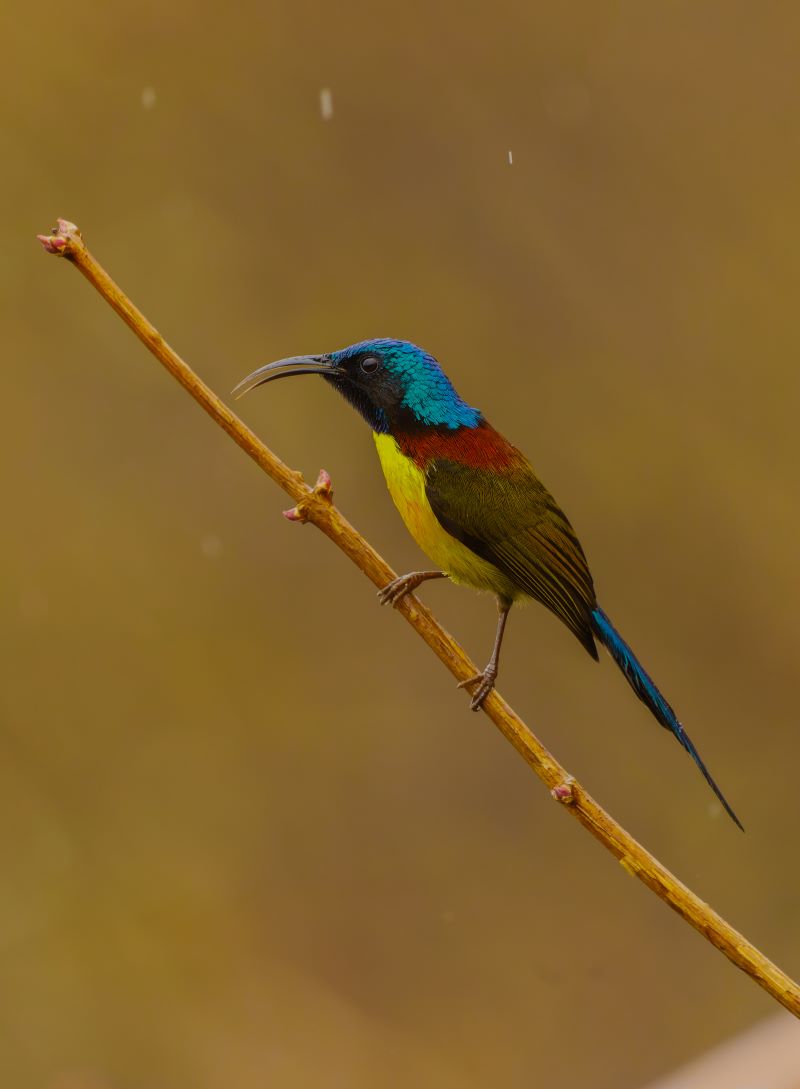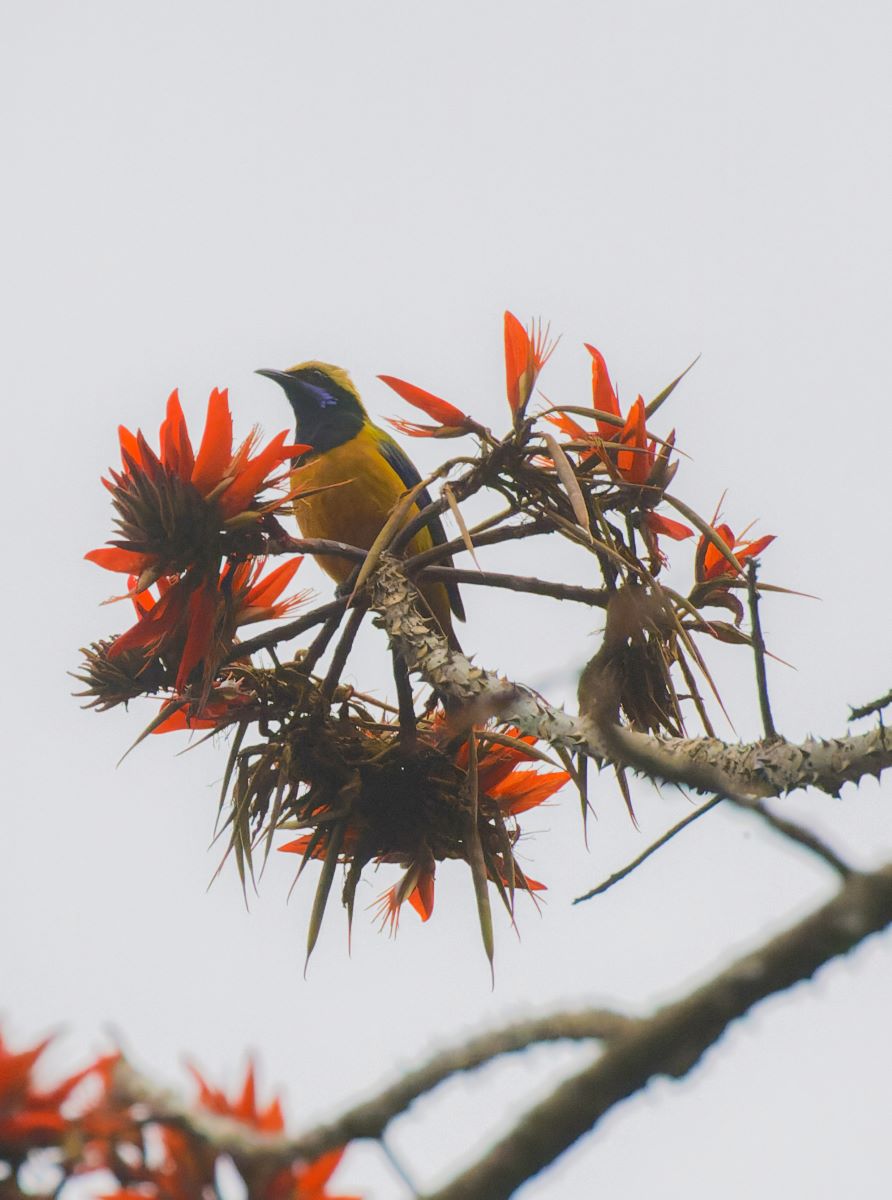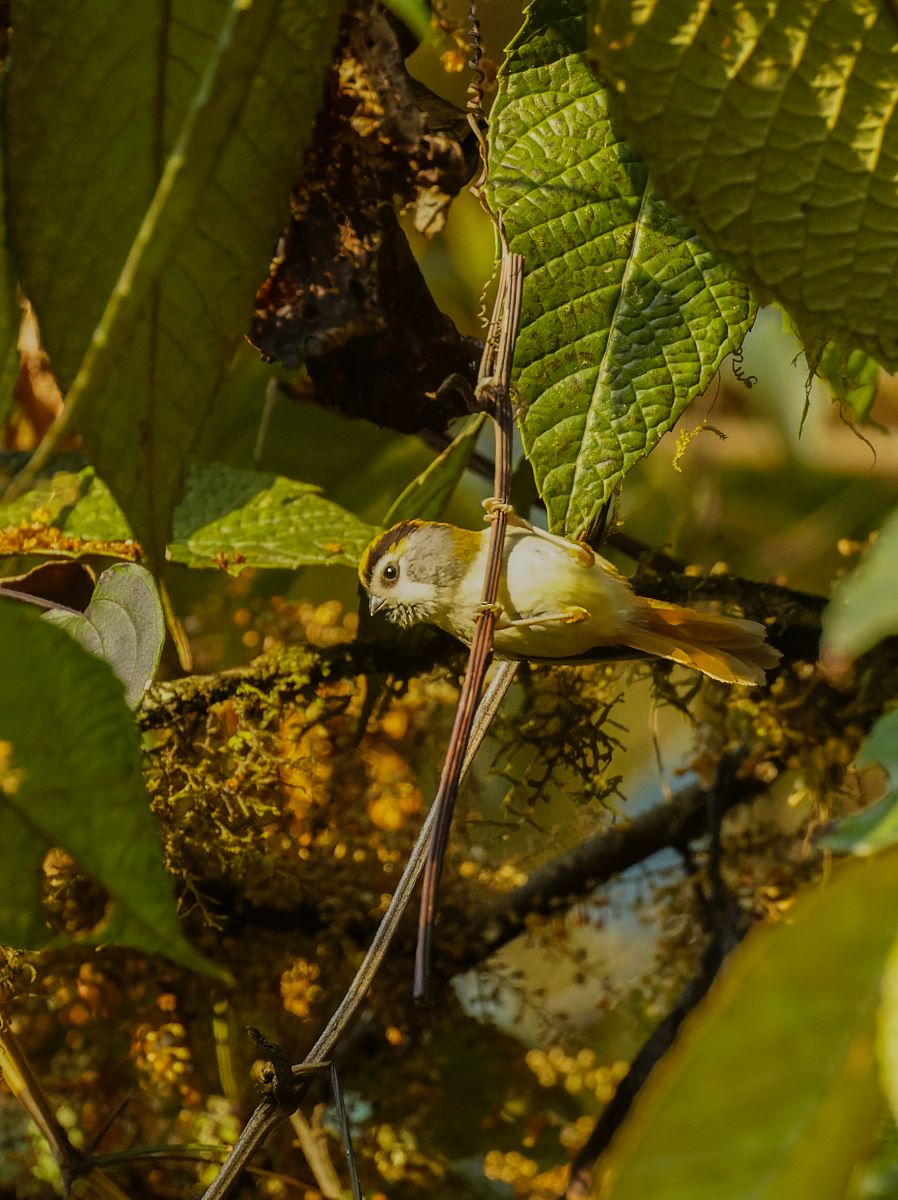 Během několika dní jsme jich pozorovali obrovské množství ptáků– nádherné druhy jako sýkora žlutolící (Machlolophus spilonotus), sýkora nádherná (Melanochlora sultanea), sýkavka oranžovobřichá (Chloropsis hardwickii), vousák žlutohrdlý (Psilopogon franklinii), strdimil proužkovaný (Arachnothera magna) – největší ze strdimilů s velikostí až 19 cm, brhlík nádherný (Sitta formosa), timálie klínozobá (Stachyris humei), sýkořice černohrdlá (Suthora nipalensis) – anglicky zvaná „papouškozobec“ podle širokého zobáku, pávík bělohrdlý (Rhipidura albicollis) a žlutobřichý (Chelidorhynx hypoxanthus), kteří roztahují ocas stejně jako praví pávi, hýl rezavohlavý (Pyrrhula erythrocephala)… Občas se nám ukázali i majestátní zoborožci rudokrcí (Acero nipalensis). Nejvzácnějším ptákem, který tady žije, je sojkovec pestrokřídlý (Liocichla bugunorum), který byl objeven v roce 1995 a popsán byl až v roce 2006.