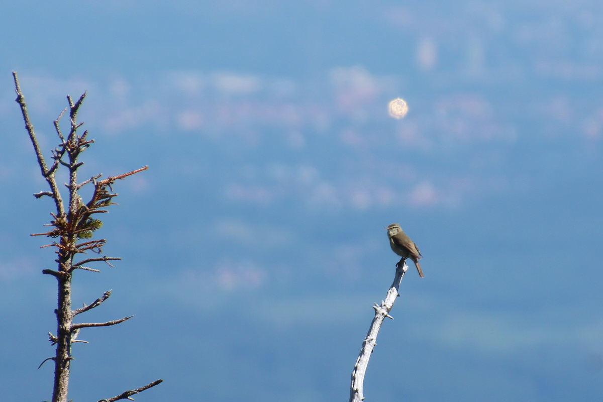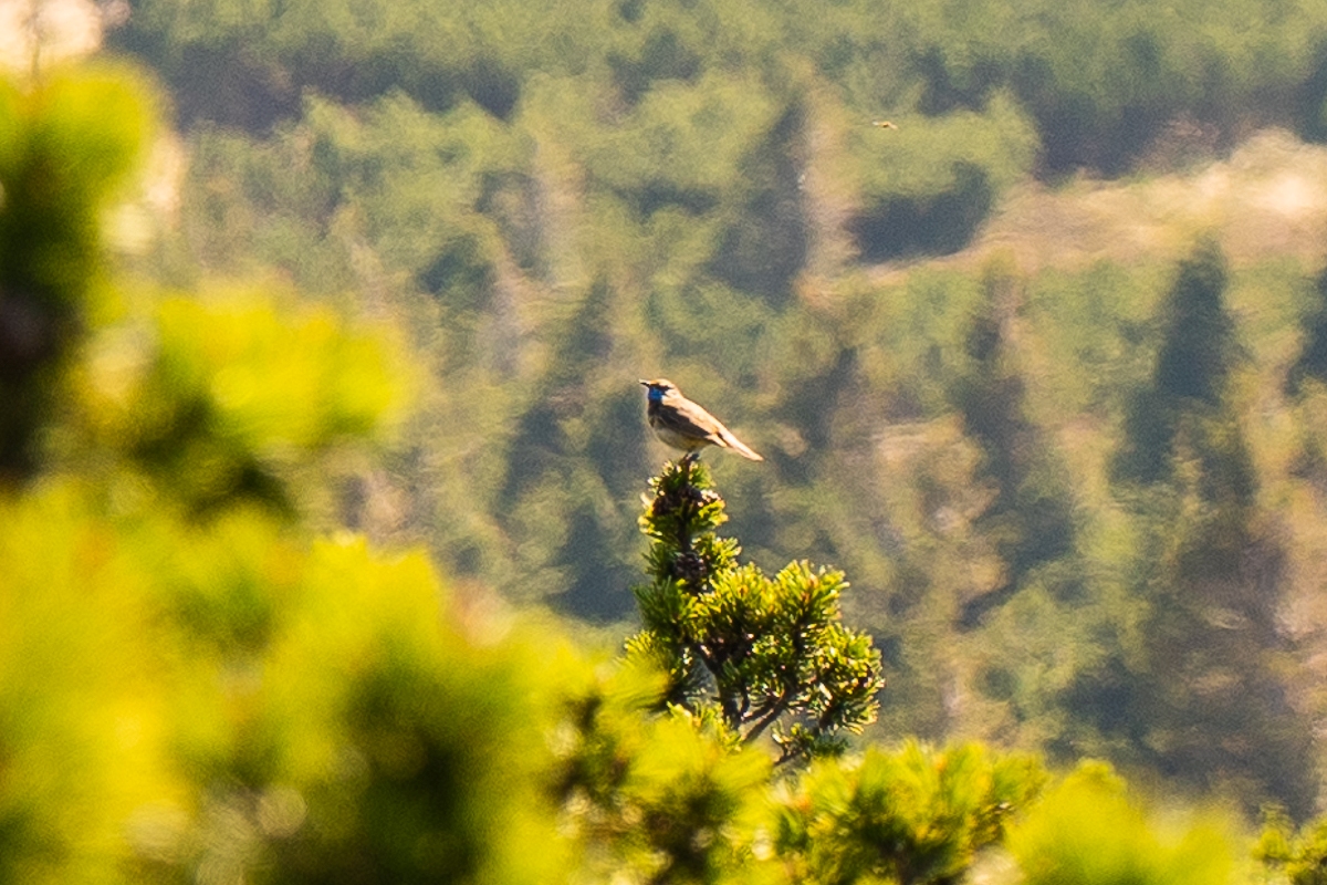 Necháme se vyvést autobusem z Horních Míseček na Vrbatovu boudu, abychom mohli co nejdříve začít s objevováním krás Krkonoš. Prvním ptákem naší exkurze, kterého slyšíme i vidíme, a možná by se dalo říci patronem naší exkurze, je budníček větší. Tento druh se ozývá všude, na každém smrčku. Hlasovým projevem je odlišný od budníčka menšího, kterého z našich poměrů známe my. Ornitologickou chůzí vyrážíme směrem k Vrbatově boudě. Tu se Kuba zaposlouchá, a ejhle, je slyšet hýl rudý. Bohužel, i přestože někteří disponují nejlepšími dalekohledy, nikomu se ho nepodaří spatřit. Skupinka se rozděluje, někteří jdou svižněji a ti, co otálí, vidí za chvíli slavíka modráčka středoevropského ve stativáku. Tak to je paráda, sameček a krásně zbarvený. Je evidentní, v jaké skupince se pohybuji. Kuba nám vysvětluje, že zde žijí i ti slavíci modráčci tundroví, těch je zde, bohužel, podstatně méně. Od středoevropských, kteří mají v modrém poli bílou hvězdu, se odlišují tím, že v modrém poli mají zrzavou skvrnu.