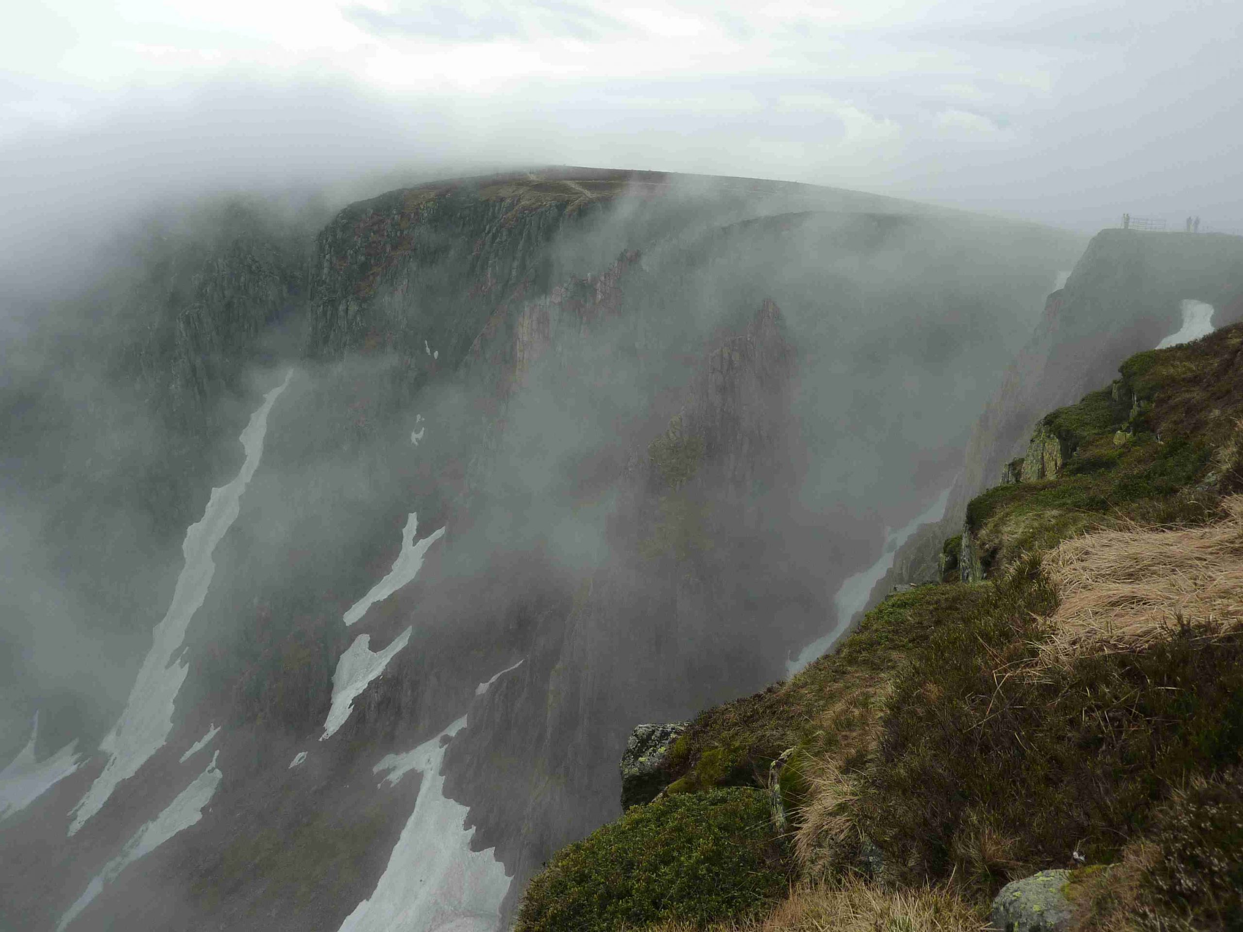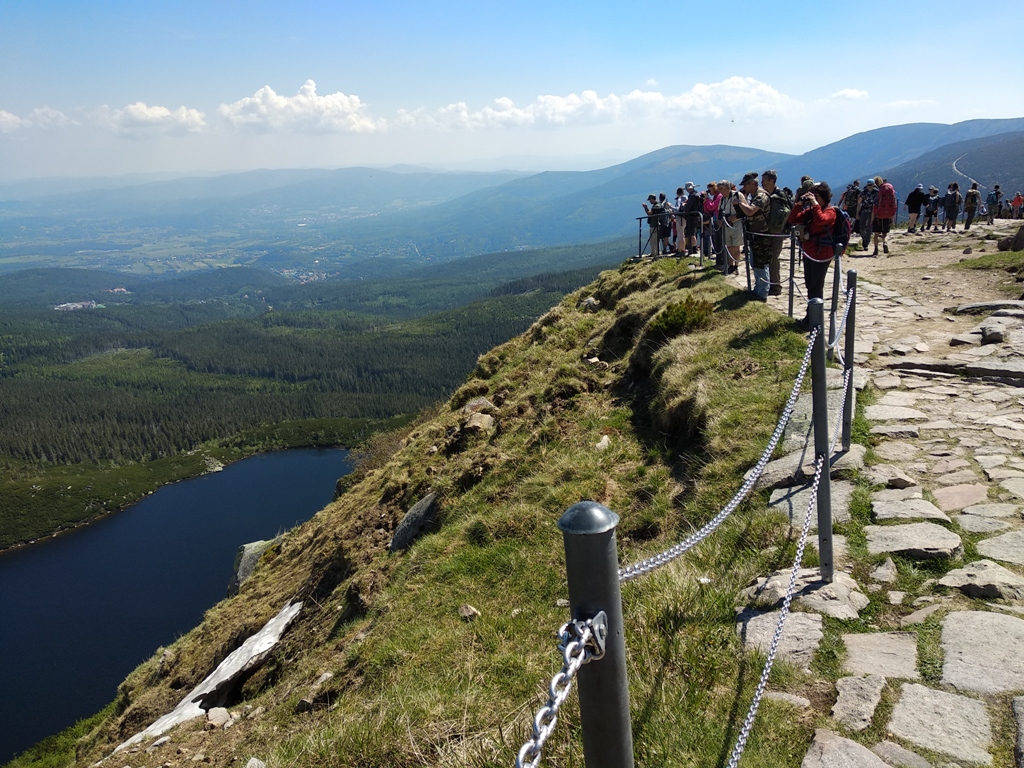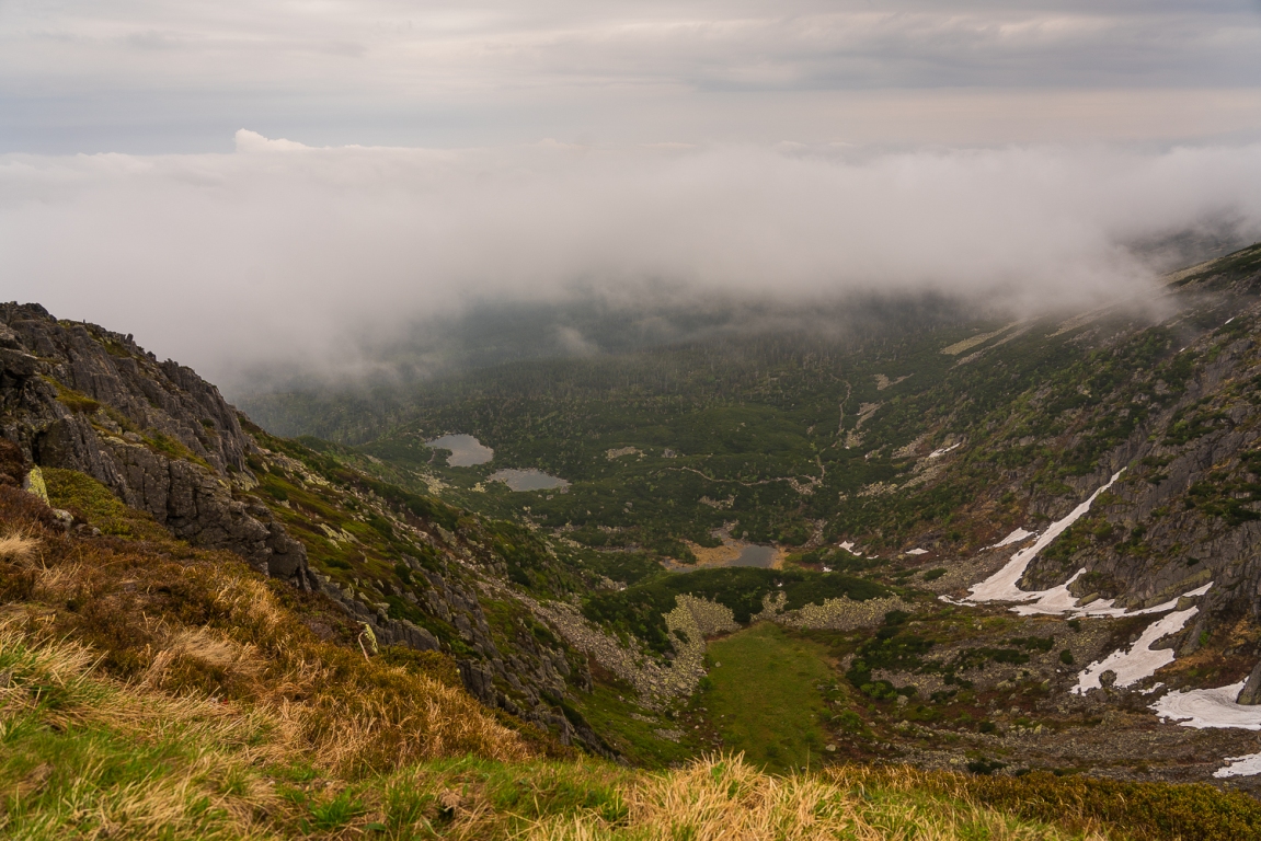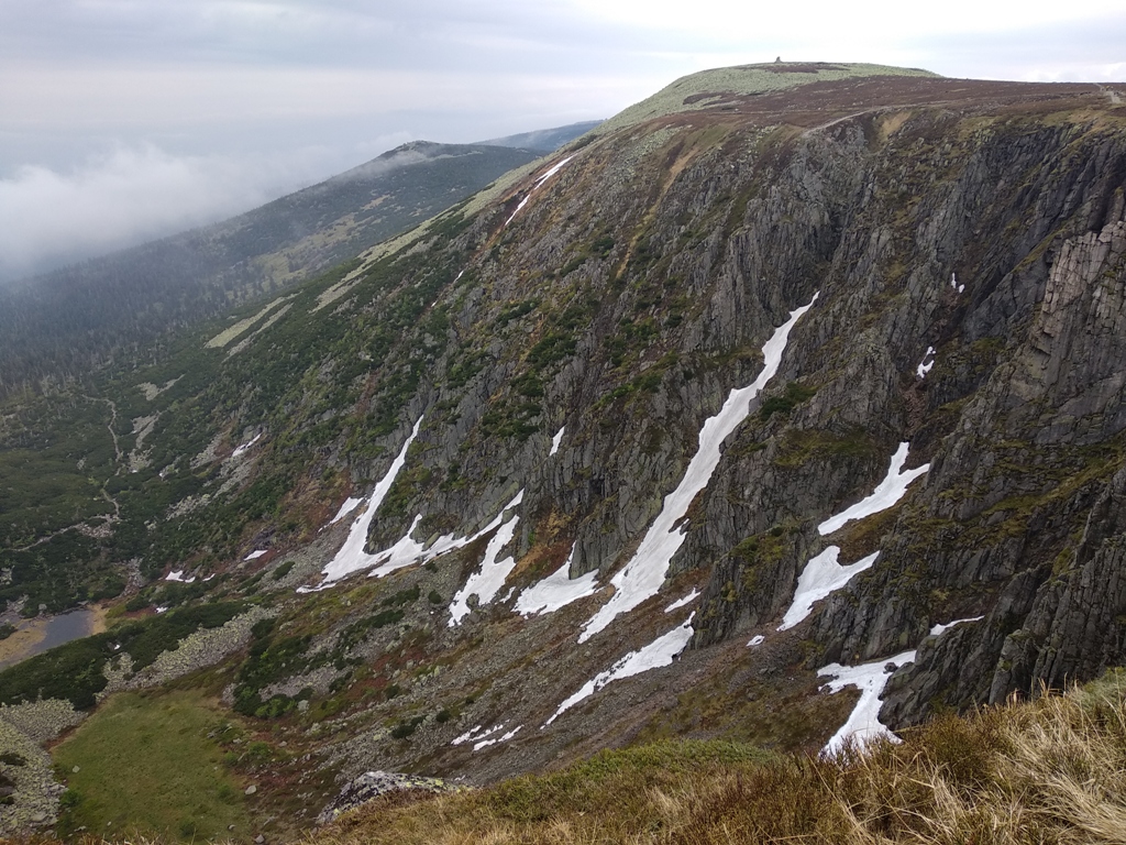 Došli jsme ke Sněžným jamám, které jsou už v Polsku. Počasí ne a ne se umoudřit. Do mlhy je zahalena i celá budova s vysílačem. Ovšem, jak na zavolání, se jámy postupně osvobodí od mlhy a ukazují svou hloubku. Jsou opravdu majestátné a také nebezpečné.