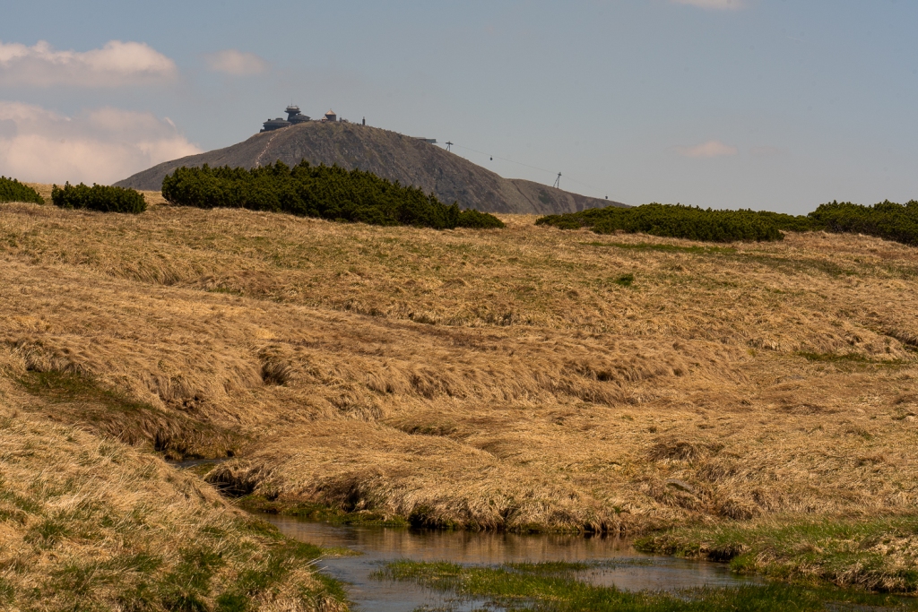 Pokračujeme kolem Velkého Rybníka, největšího ledovcového jezera Krkonoš. Na informačních cedulích se dočítáme, že je 24 metrů hluboké a jeho plocha je přes 8 hektarů. Na úpatí je ještě sníh a vedle toho kvetou koniklece alpínské. Pozorujeme konipase horské i obecné a také krkavce velké. A konečně i lindušky horské. Přesouváme se dále, k Malému Rybníku, který je menší. Má 7 metrů hloubku a skoro 3 hektary plochu. Kotle nad Velkým a Malým Rybníkem patří spolu s Velkou Sněžnou jámou k nejdokonalejším karovým formám v polských Krkonoších. Výhledy jsou odsud fotogenické. V dálce se tyčí Sněžka a u jezera krásný dřevěný kostelík. Ještě chvíli jdeme svižným tempem Polskem, než se vydáme směrem k Luční Boudě. Tam se zastavujeme na oběd a rychlou kávu. Kousek od Luční boudy jsou totiž poslední 3 jedinci slavíků modráčků tundrových, na které se těšíme.