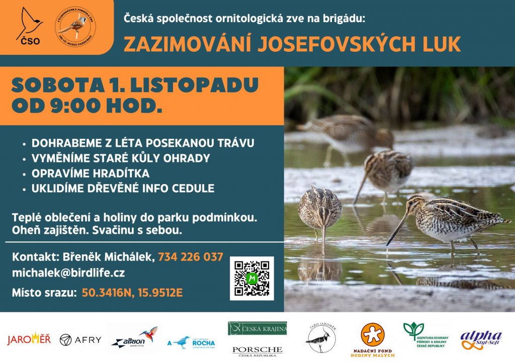 Sraz ve vstupním areálu Josefovských luk (50.3416N, 15.9512E). Procházka po ptačím parku s pozorováním všeho opeřeného. Výkonné dalekohledy, ptáčníci, kroužkovatelé a 60 ha mokřadů ve vlastnictví ČSO udržovaných pro ptáky. Bezesporu na ptačí druhy nejbohatší akce roku! Vstup volný. Trvání: celé dopoledne.