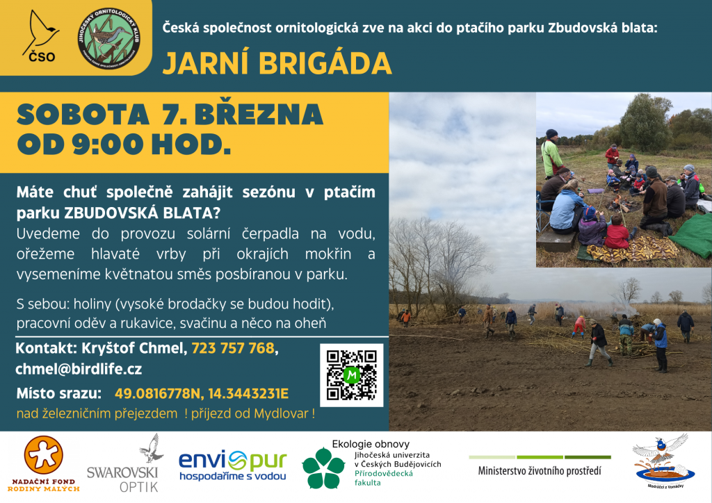 Dobrovolnická akce, vaší účastí přispějete k rozvoji ptačího parku Zbudovská blata. Přidat se může každý. Ukončení sezóny 2026 a s tím spojené práce.