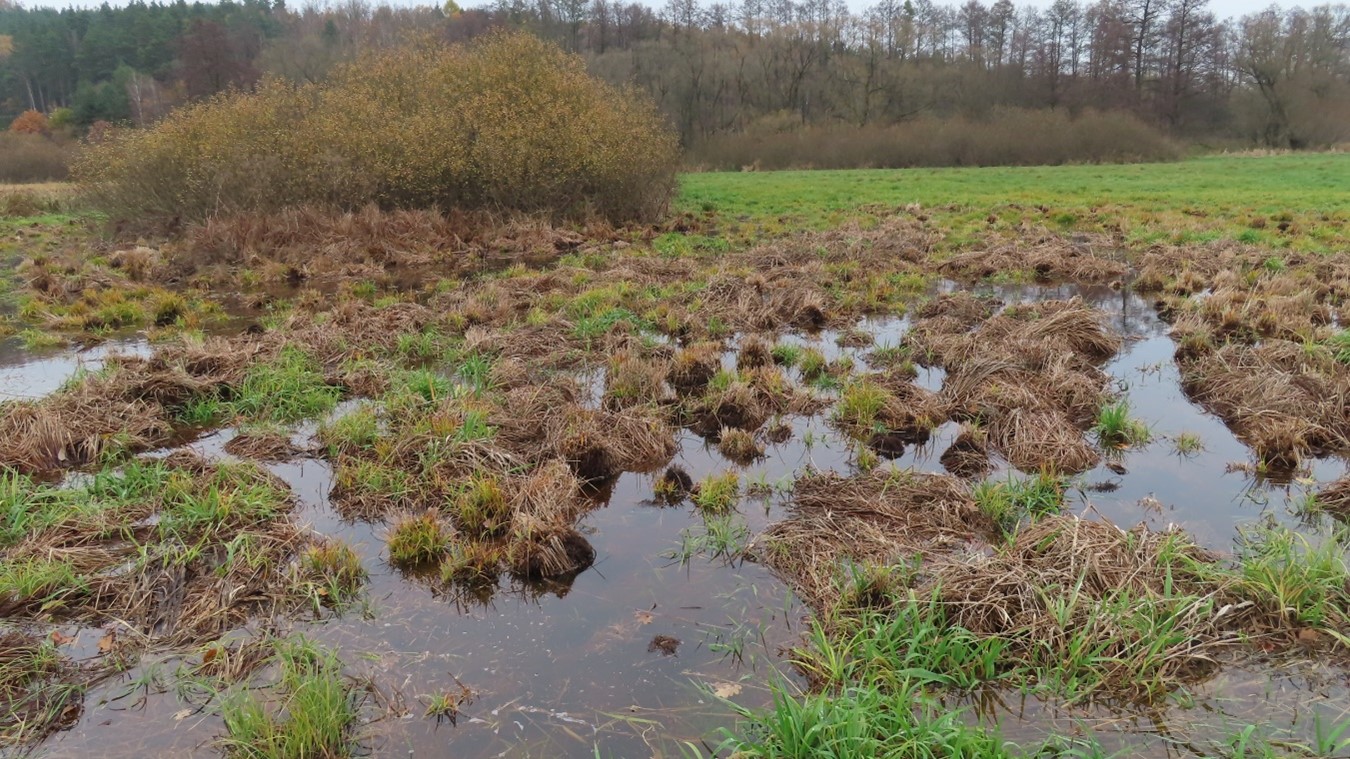 Již v roce 2023 došlo k propojení s panem Marounkem a obnovení péče o tuto část luk díky provedené seči. V obou předchozích jarních obdobích jsme pak na místě v rámci monitoringu evidovali jeden pár bekasin otavních. Letos prvně spuštěná pastva má za cíl ještě zvýšit atraktivitu ploch především pro tento druh bahňáka. I nízké dřevěné kůly mohou bekasinám sloužit jako posedy při toku a spolu se spaseným či posečeným, a zvířaty disturbovaným povrchem snad docílíme zvýšené kvality biotopu nejen pro bekasiny.