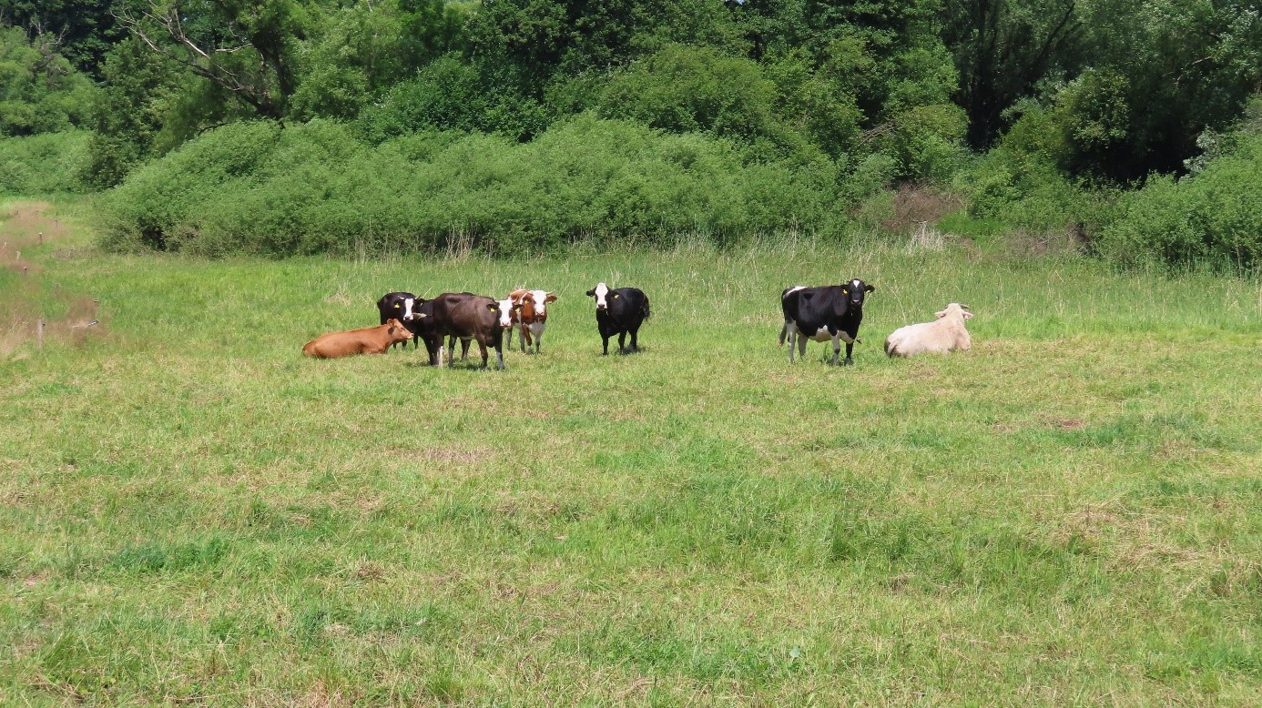 Od června tohoto roku jsme ve spolupráci s panem Jaroslavem Marounkem, chovatelem skotu a zemědělcem z České Lípy, zahájili pastvu krav v západní části ptačího parku, na levém břehu řeky Ploučnice. Zvířata pana Marounka pomohou v rámci rotační pastvy s údržbou nivních porostů a jejich diverzifikací. Hlavním cílem je zvýšit kvalitu biotopu pro bekasiny otavní (Gallinago gallinago), ale také případně chřástaly polní (Crex crex).