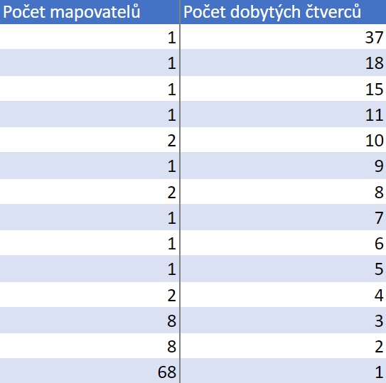 Známe již také celkového vítěze celé tříměsíční soutěže. Titul nejúspěšnějšího dobyvatele sezony vybojoval Tomáš Charvát s úctyhodnými 92 dobytými čtverci. O druhé a třetí místo se dělí Jakub Handschuh a František Dočkal s také velmi vysokým počtem 63 dobytých čtverců.