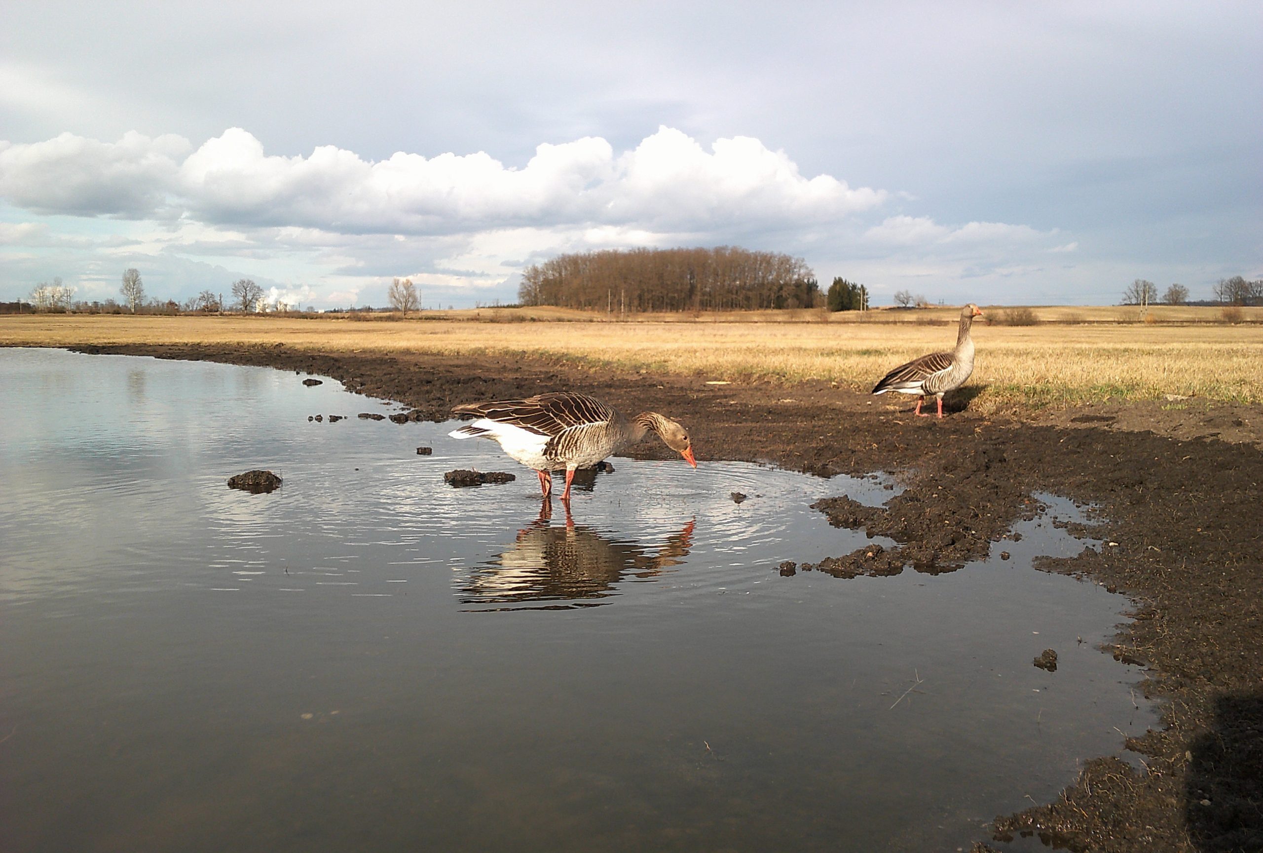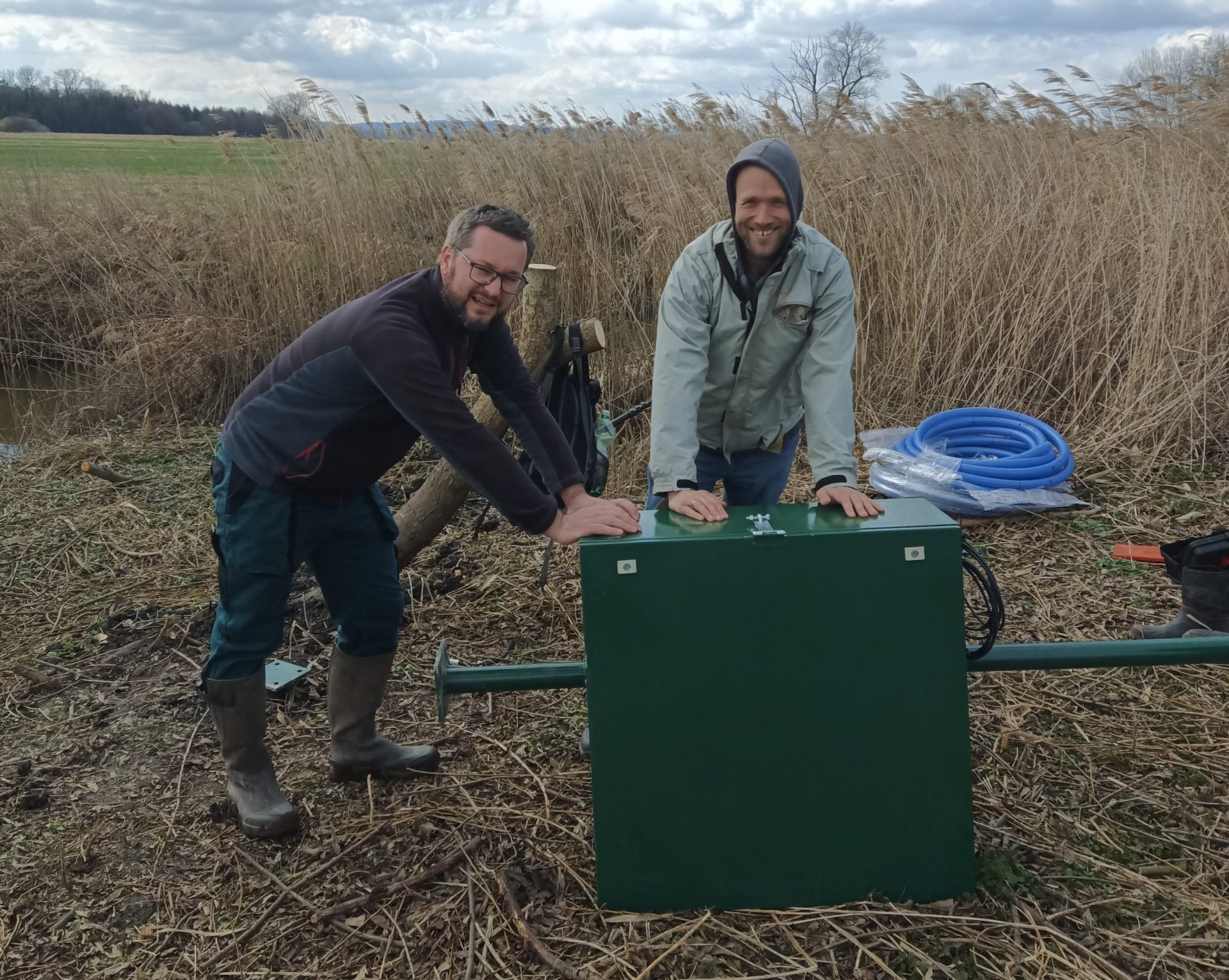 První čerpadlo jsme nainstalovali již 1. března během veřejné brigády. „Prohlubně se rychle naplnily vodou a mezi prvními návštěvníky nové tůně se objevil i pár hus velkých. Z prvních pozorovaných bahňáků se na zamokřené ploše zastavil vodouš kropenatý, který zde sbíral potravu. Další tři solární čerpadla jsme nainstalovali koncem března, opět za pomoci dobrovolníků. Teď nezbývá než čekat, až se na zamokřených plochách v teplejším počasí dostatečně namnoží hmyz, a mokřiny se tak stanou atraktivním zdrojem potravy pro naše cílové druhy – luční bahňáky,“ dodává Chmel.