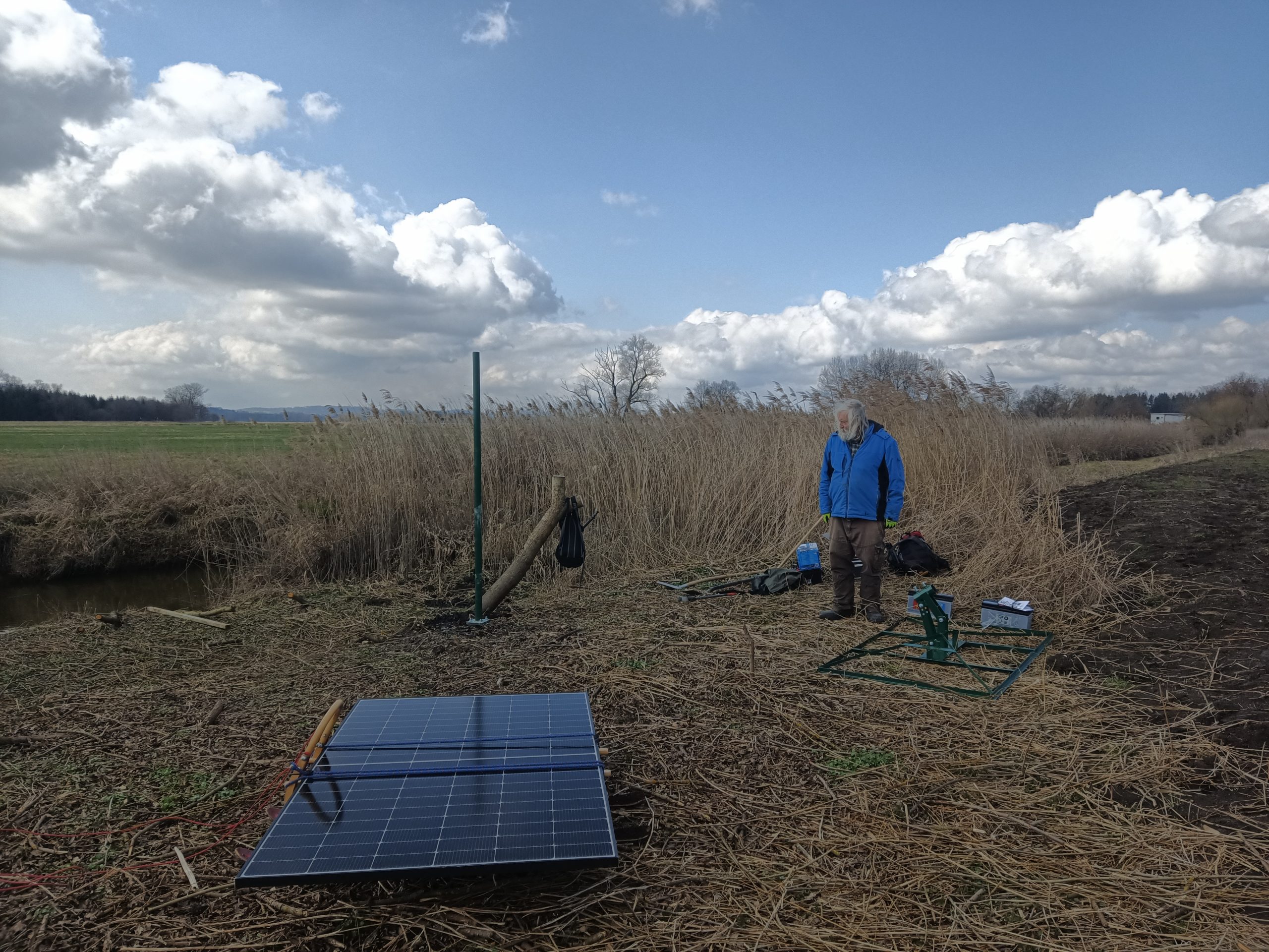 Se zahájením hnízdní sezóny jsme na Zbudovských blatech začali napouštět vodou čtyři terénní sníženiny o celkové rozloze 6000 m2, vybudované přes zimu podél Bezdrevského potoka. Naším cílem je obnovit na lokalitě původní mokřadní biotopy, které zde v minulosti zanikly v důsledku regulace potoka a po vybudování melioračního systému. S tím nám mají pomoci solární čerpadla, která zajistí, že mokřad nevyschne ani během suchých jarních období.