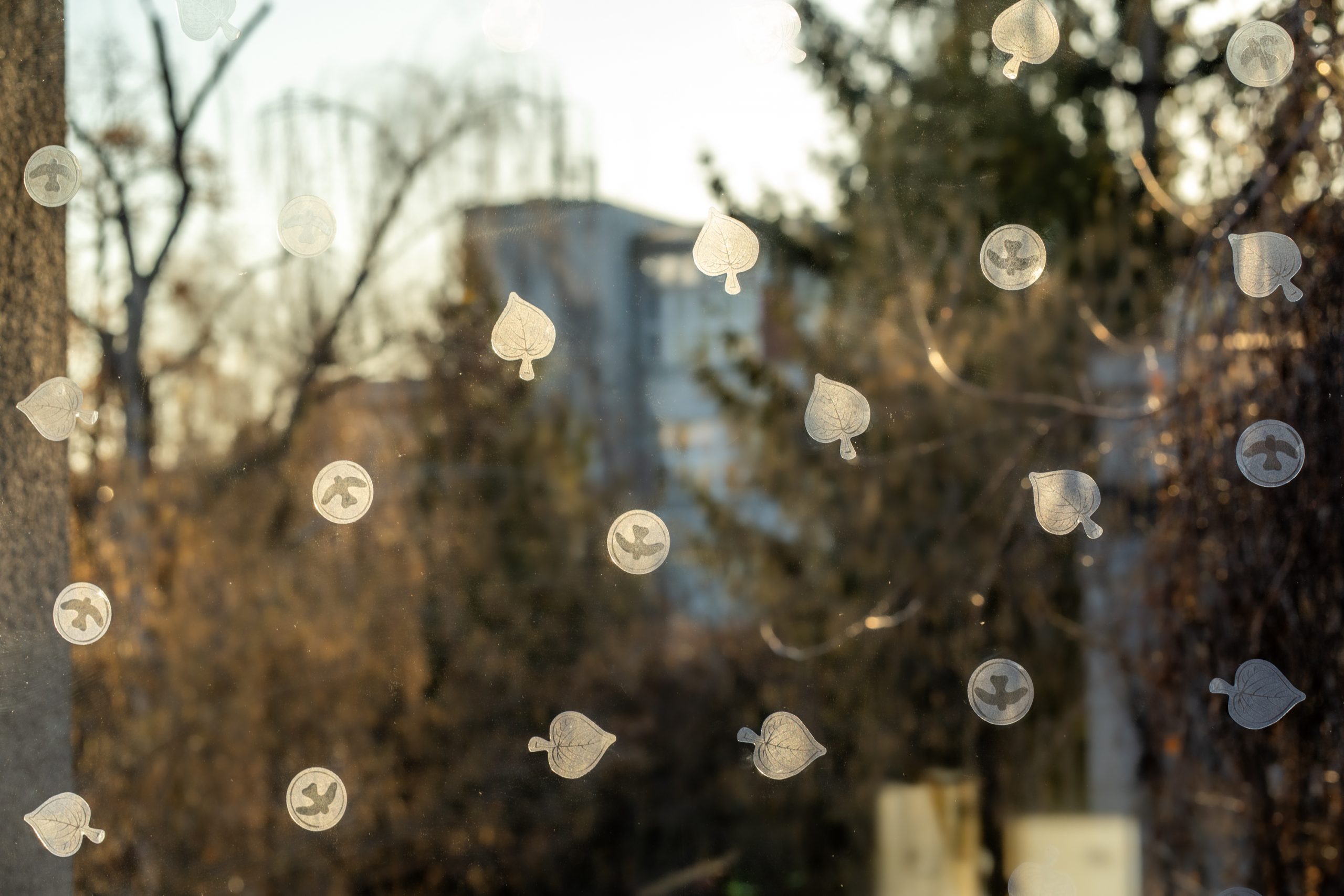 Skleněné plochy je potřeba ptákům zviditelnit. „Nejjednodušší cestou, jak zabezpečit zejména menší plochy v domácnostech, školních budovách anebo zastávky MHD, jsou speciální polepy či samolepky na sklo. Široký výběr takovýchto samolepek najdete například v Obchodě ČSO. Dají se pořídit v různých tvarech a barvách a mohou být i zajímavým designovým prvkem. Existují dokonce UV samolepky, které jsou pro člověka téměř neviditelné, ale ptáci je díky schopnosti vnímat ultrafialové světlo dobře registrují. Klíčové je dodržet pravidlo, že mezery mezi prvky nesmí být větší než 10 centimetrů – jinak ztrácejí účinnost. Jedna silueta dravce opravdu nestačí,“ upozorňuje Viktora.