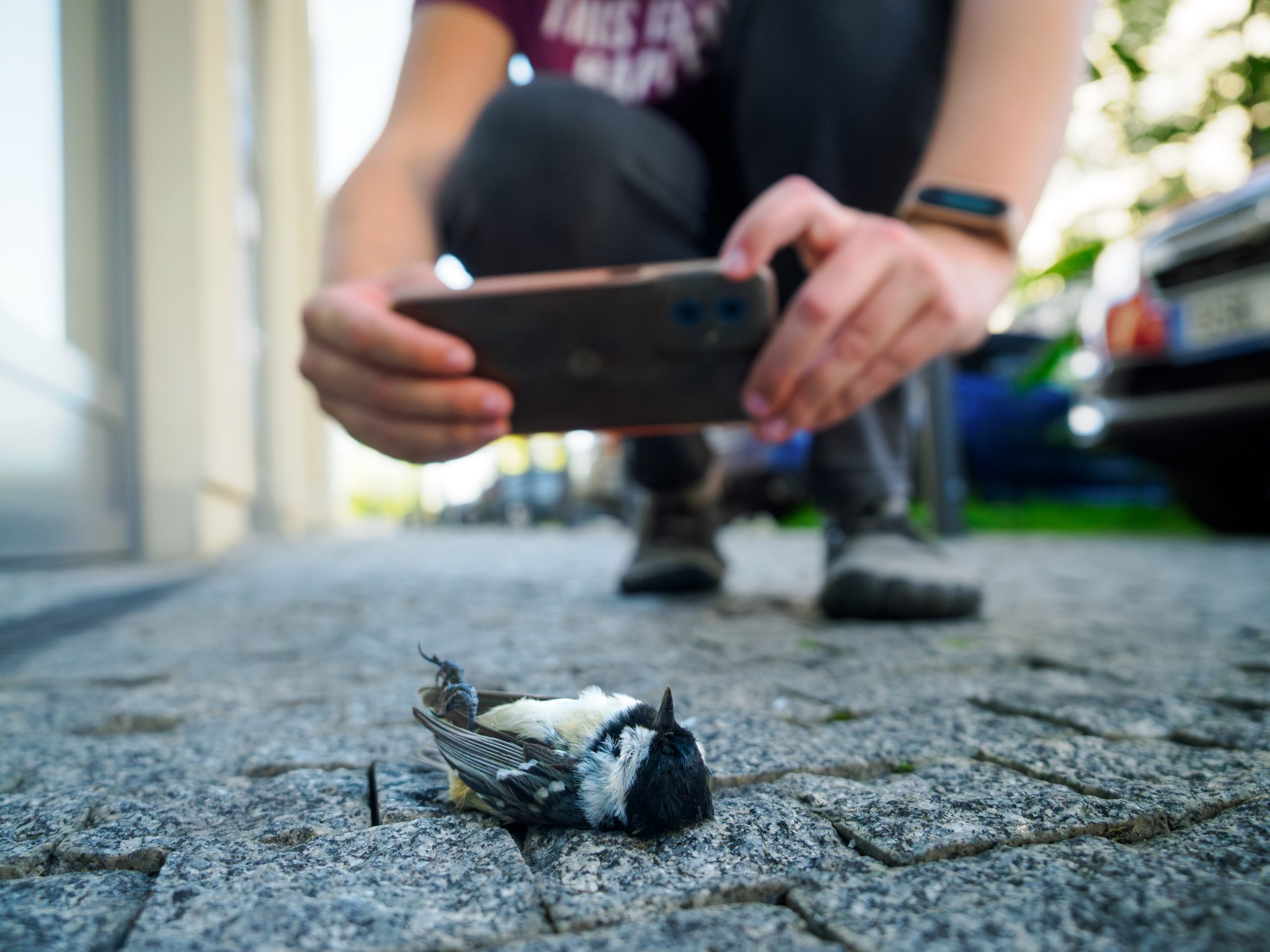 - nález vyfoťte se skleněnou plochou na pozadí, ne pouze detail uhynulého/poraněného ptáka