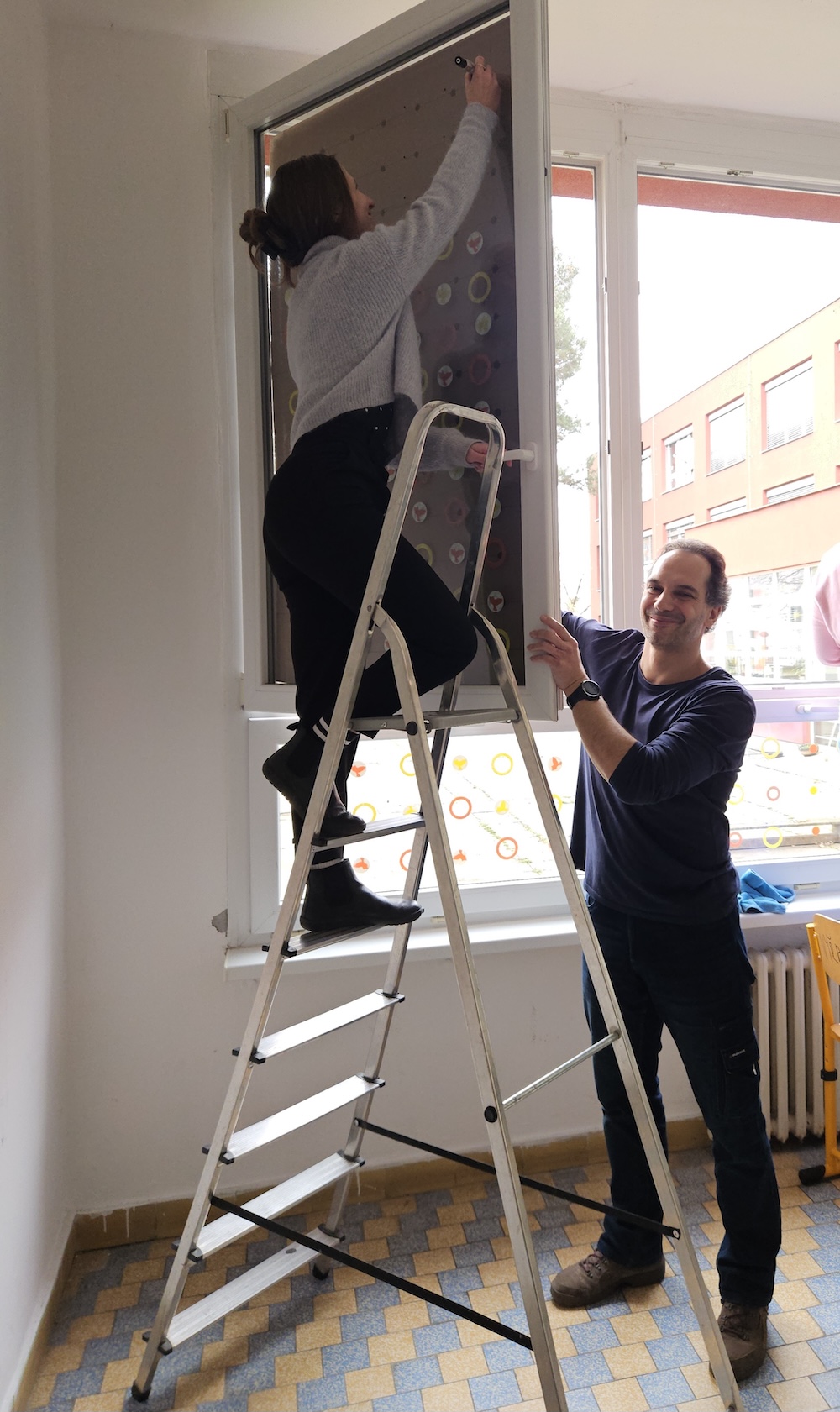 A konečně ve čtvrtek 12. 3. jsme na ZŠ Holečkova zajistili přímé zabezpečení oken dvou chodeb školy ve spolupráci přímo s dětmi a učiteli 6. až 8. tříd. Součástí byly také tři přednáškové bloky k tématu „ptačích pastí“. Celkem se do zabezpečení skel vlastní školy zapojilo téměř sto žáků a učitelů. Další nebezpečná okna bude škola postupně zabezpečovat stejným způsobem.