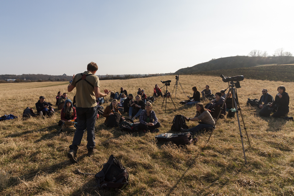 Vybaveni dalekohledy a rozděleni do malých skupin jsme se vydali vstříc chladnému sobotnímu ránu do Královské obory známé spíše jako Stromovka. Mnozí z nás zalitovali, že si rukavice zapomněli doma na stole. První zajímavé pozorování na sebe nedalo dlouho čekat, protože kousek od vstupu si tesala dutinu žluna zelená. Velkou výzvou po celý víkend bylo určování ptáků podle hlasu. Člověk se nestačí divit, kolik jich může při bližším zaposlouchání naráz slyšet. Právě jarní měsíce jsou pro procvičování této aktivity ideální doba, protože samci v plném rozpoložení svým hlasem lákají samice k zakládání rodin. V rámci vycházky jsme si také vyzkoušeli, jak probíhá Liniové sčítání druhů, vysvětlili si základy práce s dalekohledem a ukázali si, jak pracovat s určovacím atlasem od Svenssona. Z těch nejzajímavějších pozorování během rána a dopoledne stojí za zmínku ledňáček říční, lžičák pestrý nebo kavky obecné hnízdící v dutině stromu.