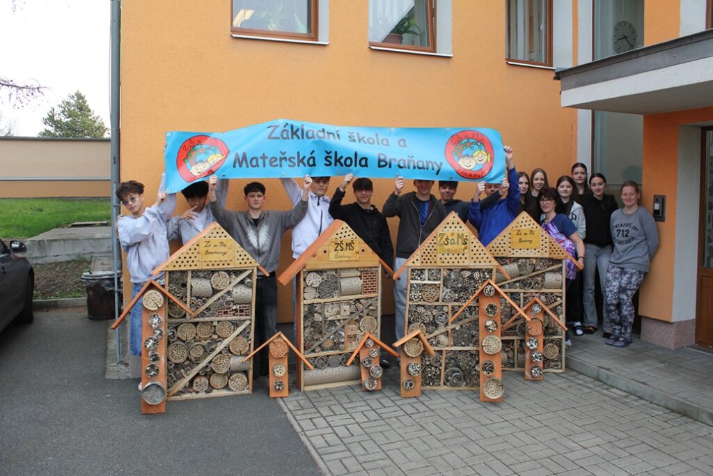 V zimních měsících se dílna školy v Braňanech proměnila v malé truhlářské centrum. Žáci školy společně plánovali konstrukci, rozdělovali si úkoly a pak následovaly desítky hodin pilování, vrtání, skládání a zdobení. A nakonec výsledek, který pomůže přírodě po celé roky. Žáci 2. stupně ZŠ a MŠ Braňany pod vedením paní učitelky Šárky Pavelkové vyrobili čtyři velké a šest menších hmyzích domků, které 19. března 2026 slavnostně předali zástupcům České společnosti ornitologické. Ještě tentýž den jsme všechny domečky umístili v ptačím parku Střimická výsypka.