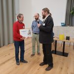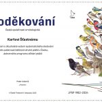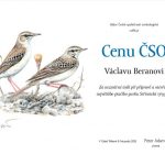 Čerstvý čestný člen ČSO Tomáš Bělka ještě na podiu chvíli zůstal, aby vylosoval tradiční ceny pro aktivní účastníky programu Liniové sčítání druhů. Los určil knižní odměny pro Jana Havlíčka (sčítá 7 let) a Jiřího Pykala (sčítá 13 let) a dalekohled Meostar HD 10×42 pro Alenu Klvaňovou (sčítá 19 let). Dalekohled pro tento účel věnovala společnost Meopta, které tímto srdečně děkujeme. Závěrem předseda ČSO Peter Adamík předal zvláštní poděkování čestnému členovi profesoru Karlovi Šťastnému za zásluhy o založení Jednotného programu sčítání ptáků, díky němuž máme přesné informace o vývoji početnosti ptačích populací od začátku 80. let 20. století.