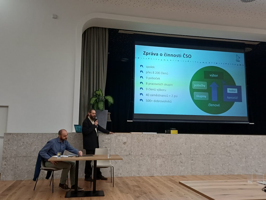 V dalším bodu programu uvedl ředitel kanceláře ČSO Zdeněk Vermouzek zprávu o činnosti za rok 2025. Nejprve představil strukturu ČSO, činnost kanceláře a výboru, pobočky ČSO a zmínil nárůst počtu členů ČSO od minulé členské schůze na 8209 členů. Poté se věnoval představení výroční zprávy ČSO za rok 2024 (zveřejněna na webu birdlife.cz/vyrocni-zpravy), přičemž zdůraznil především tři pilíře činnosti, výzkum, ochranu a osvětu, a konečně představil účetní závěrku za rok 2024.