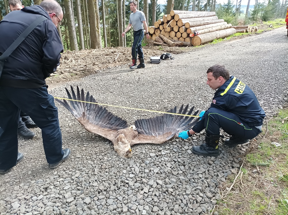 Mrtvou samici orla mořského našli v lese na Toužimsku kolemjdoucí, kteří přivolali pracovníky ochrany přírody. „Uhynulý orel ležel přímo pod hnízdem, které bylo 35 metrů vysoko. Existovala ale šance, že na něm jsou ještě živá mláďata. Svou pomoc nabídl hasičský záchranný sbor, který se dostal s výsuvným žebříkem až ke hnízdu. Tam bohužel hasiči našli už jen mrtvé orlí mládě. Bylo mu pár týdnů,“ říká Pavla Tájková z Agentury ochrany přírody a krajiny ČR, Regionálního pracoviště Správa CHKO Slavkovský les. Osud druhého ptáka z páru je neznámý.